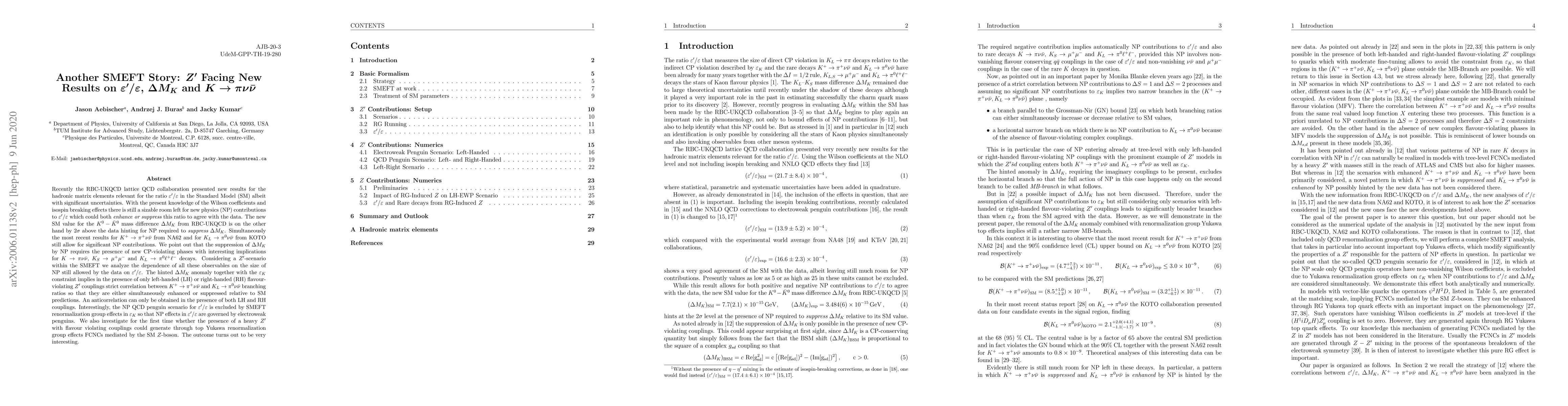 Recently the RBC-UKQCD lattice collaboration presented new results for the hadronic matrix elements relevant for the ratio $\varepsilon'/\varepsilon$ in the Standard Model (SM). With the present knowledge of the Wilson coefficients and isospin breaking effects there is still much room for new physics (NP) contributions to $\varepsilon'/\varepsilon$ which could both enhance or suppress this ratio to agree with the data. The new SM value for the $K^0-\bar K^0$ mass difference $\Delta M_K$ from RBC-UKQCD is on the other hand by $2\sigma$ above the data hinting for NP required to suppress $\Delta M_K$. Simultaneously the most recent results for $K^+\rightarrow\pi^+\nu\bar\nu$ from NA62 and for $K_{L}\rightarrow\pi^0\nu\bar\nu$ from KOTO still allow for significant NP contributions. We point out that the suppression of $\Delta M_K$ by NP requires the presence of new CP-violating phases with interesting implications for $K\to\pi\nu\bar\nu$, $K_S\to\mu^+\mu^-$ and $K_L\to\pi^0\ell^+\ell^-$ decays. Considering a $Z^\prime$-scenario within the SMEFT we analyze the dependence of all these observables on the size of NP still allowed by the data on $\varepsilon'/\varepsilon$. The NP QCD penguin scenario for $\varepsilon'/\varepsilon$ is excluded by SMEFT renormalization group effects in $\varepsilon_K$ so that NP effects in $\varepsilon'/\varepsilon$ are governed by electroweak penguins. We also investigate for the first time whether the presence of a heavy $Z^\prime$ with flavour violating couplings could generate through top Yukawa renormalization group effects FCNCs mediated by the SM $Z$-boson. The outcome turns out to be very interesting.