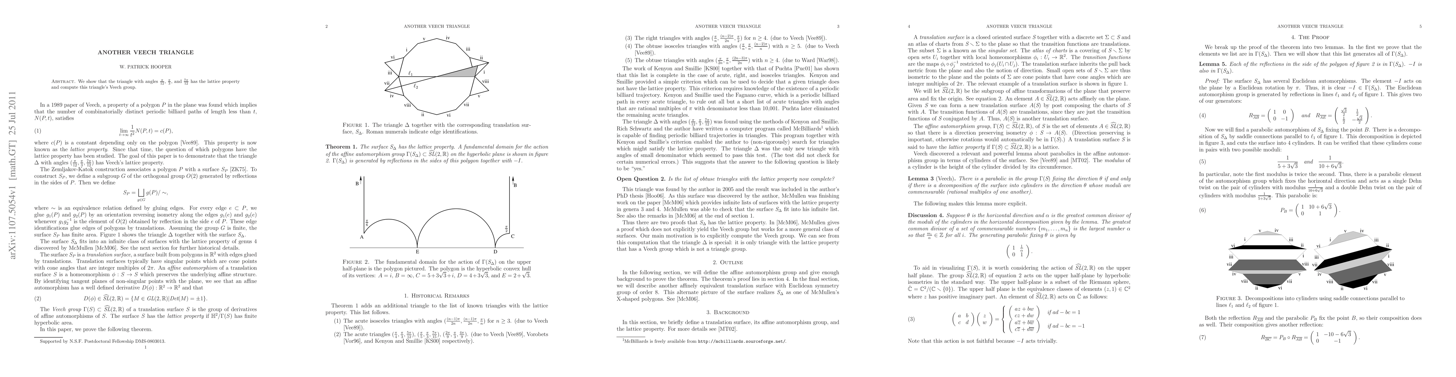 Researchers prove a specific triangle has lattice property and compute its Veech group, a key concept in geometric group theory and mathematical physics.