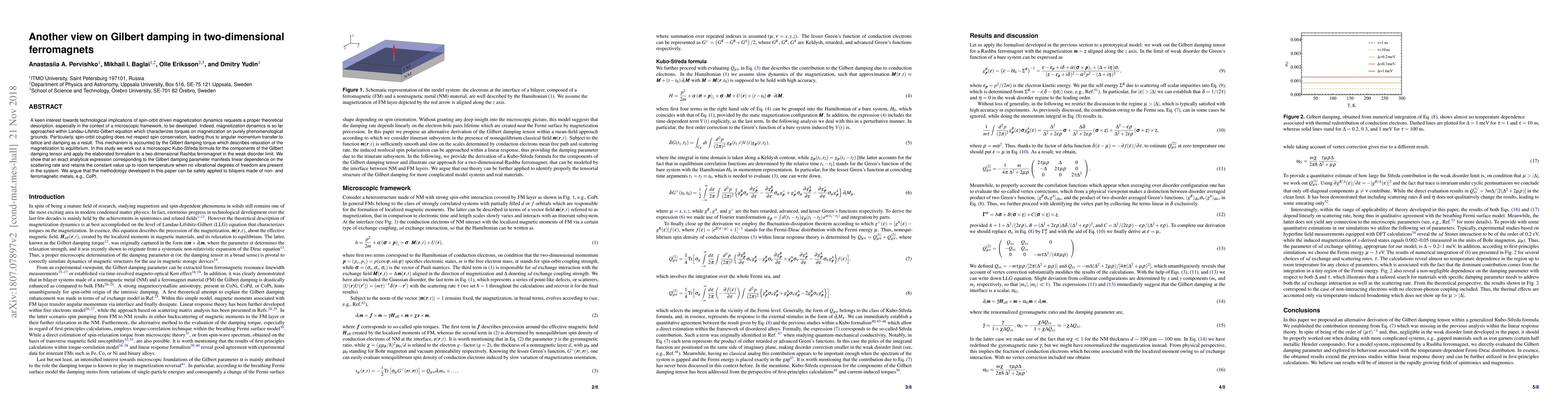 A keen interest towards technological implications of spin-orbit driven magnetization dynamics requests a proper theoretical description, especially in the context of a microscopic framework, to be developed. Indeed, magnetization dynamics is so far approached within Landau-Lifshitz-Gilbert equation which characterizes torques on magnetization on purely phenomenological grounds. Particularly, spin-orbit coupling does not respect spin conservation, leading thus to angular momentum transfer to lattice and damping as a result. This mechanism is accounted by the Gilbert damping torque which describes relaxation of the magnetization to equilibrium. In this study we work out a microscopic Kubo-St\v{r}eda formula for the components of the Gilbert damping tensor and apply the elaborated formalism to a two-dimensional Rashba ferromagnet in the weak disorder limit. We show that an exact analytical expression corresponding to the Gilbert damping parameter manifests linear dependence on the scattering rate and retains the constant value up to room temperature when no vibrational degrees of freedom are present in the system. We argue that the methodology developed in this paper can be safely applied to bilayers made of non- and ferromagnetic metals, e.g., CoPt.