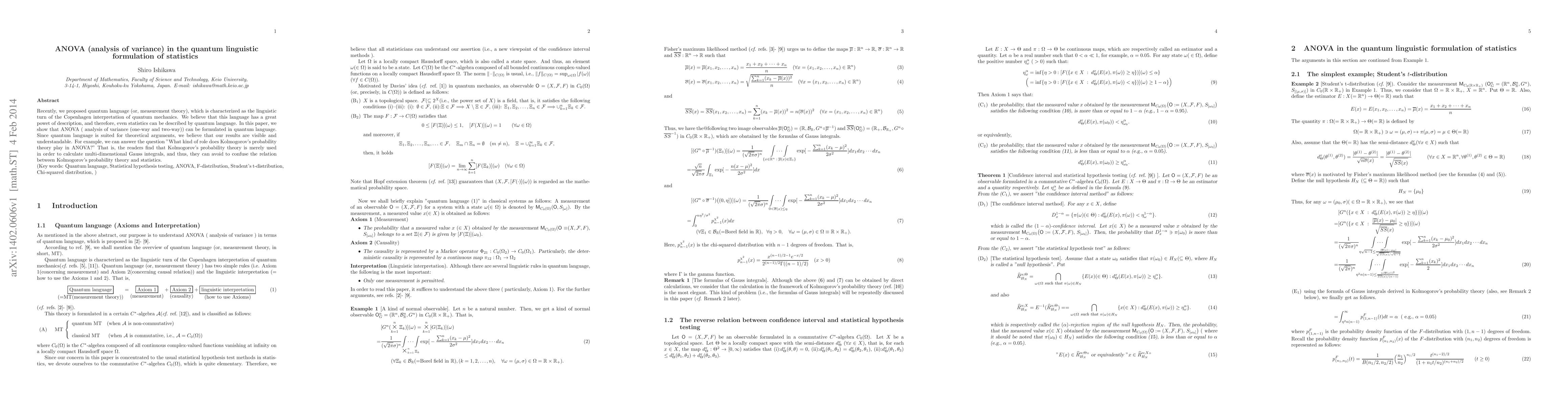 Researchers show that Analysis of Variance (ANOVA) can be described using quantum language, providing a new framework for understanding statistical concepts like Kolmogorov's probability theory.