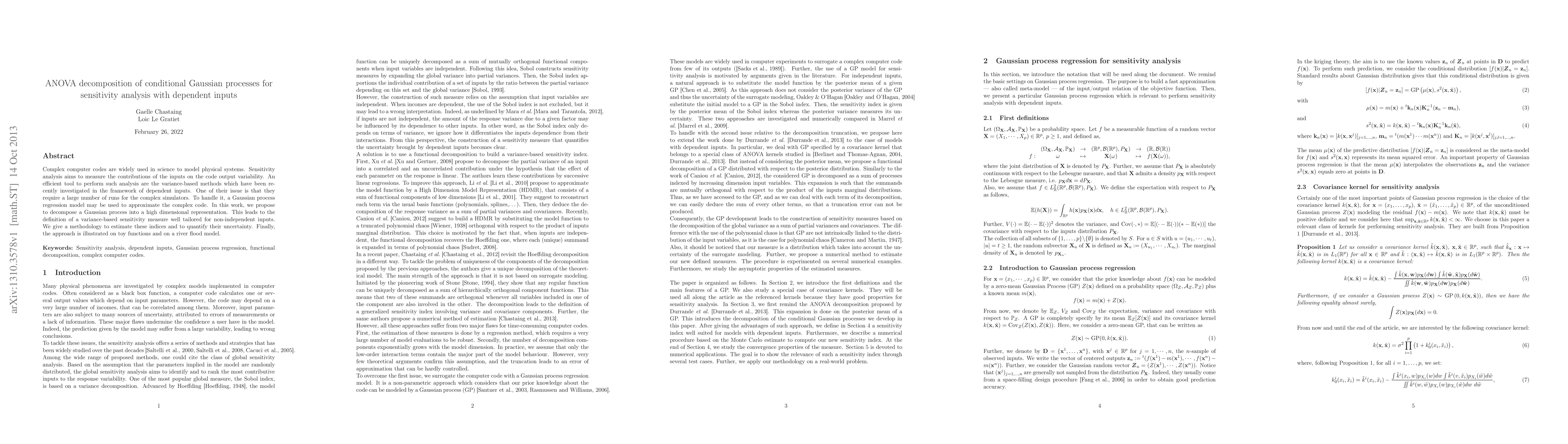 This paper proposes a method to decompose Gaussian processes into high-dimensional representations for sensitivity analysis of complex computer codes with dependent inputs. The approach defines a new variance-based sensitivity measure and provides a methodology for estimating these indices and quantifying their uncertainty, demonstrated through toy functions and a river flood model.