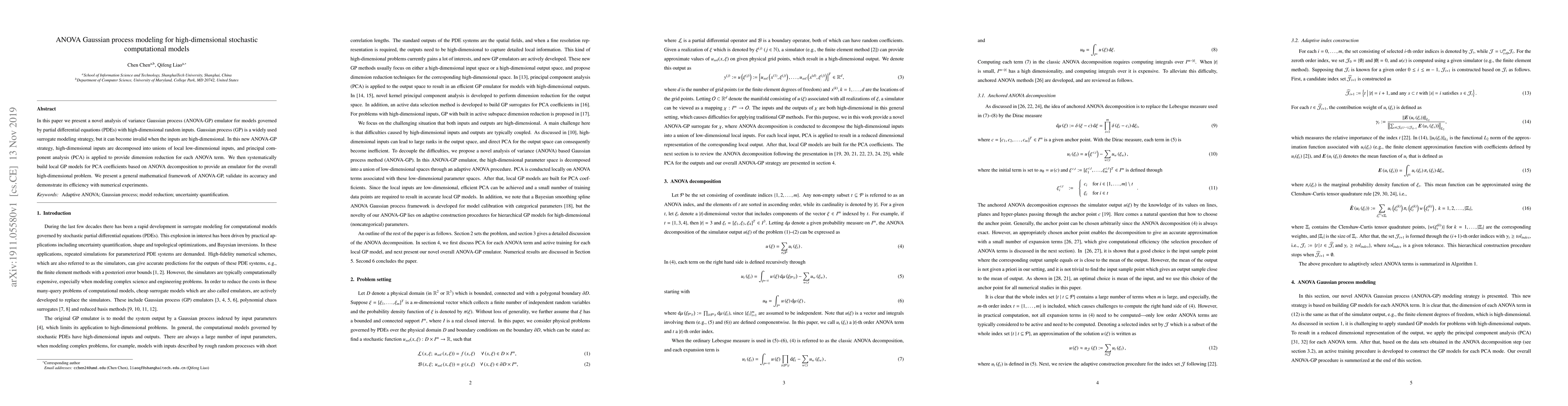 This paper introduces an ANOVA-GP emulator to model high-dimensional stochastic PDEs. It decomposes high-dimensional inputs into local low-dimensional components, applies PCA for dimension reduction, and builds local GP models for PCA coefficients to create an efficient emulator.
