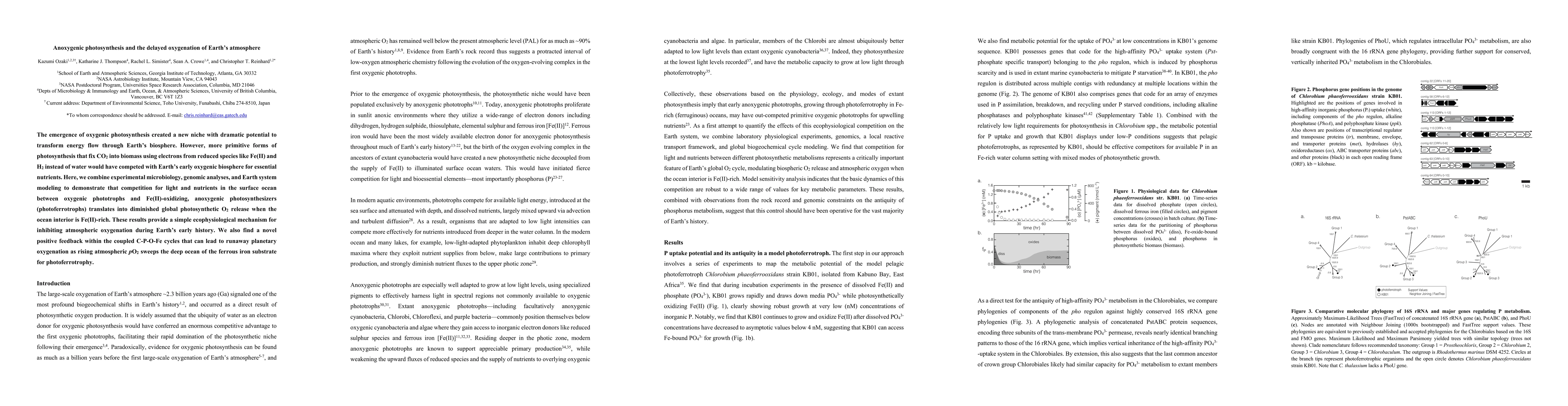 This paper combines experimental microbiology, genomic analyses, and Earth system modeling to show that competition between oxygenic phototrophs and anoxygenic photoferrotrophs in the early ocean inhibited atmospheric oxygenation. It also identifies a feedback mechanism that could lead to rapid oxygenation once atmospheric oxygen levels rise.