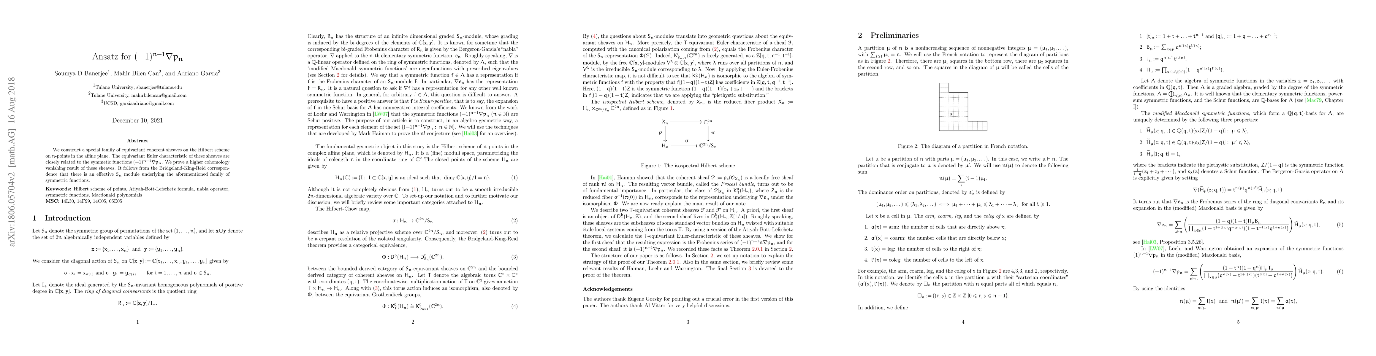 Researchers create a family of equivariant coherent sheaves with Euler characteristics related to symmetric functions $(-1)^{n-1} abla p_n$, proving higher cohomology vanishing results that imply an effective $S_n$ module underlying these functions.