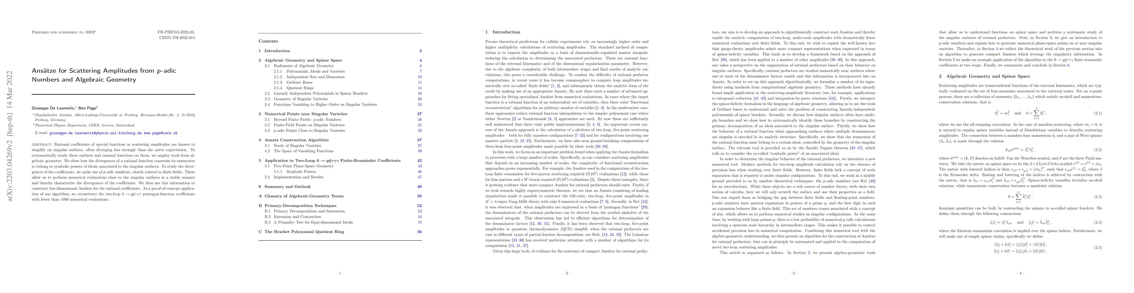 This paper employs algebraic geometry and $p$-adic numbers to systematically study the rational coefficients in scattering amplitudes near singular surfaces, showing how divergences constrain the numerators. It reconstructs low-dimensional approximations for these coefficients, exemplified by successfully reconstructing two-loop pentagon-function coefficients with minimal numerical evaluations.