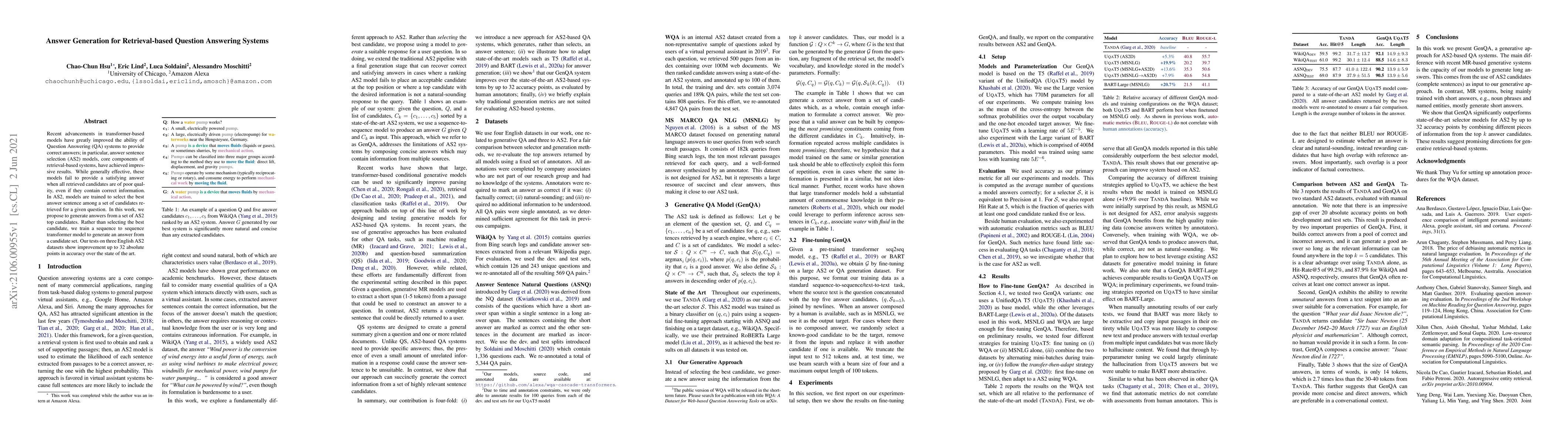 The paper introduces GenQA, a novel generative approach for AS2-based QA systems, which extends the traditional AS2 pipeline with a final generation stage to recover correct and satisfying answers.