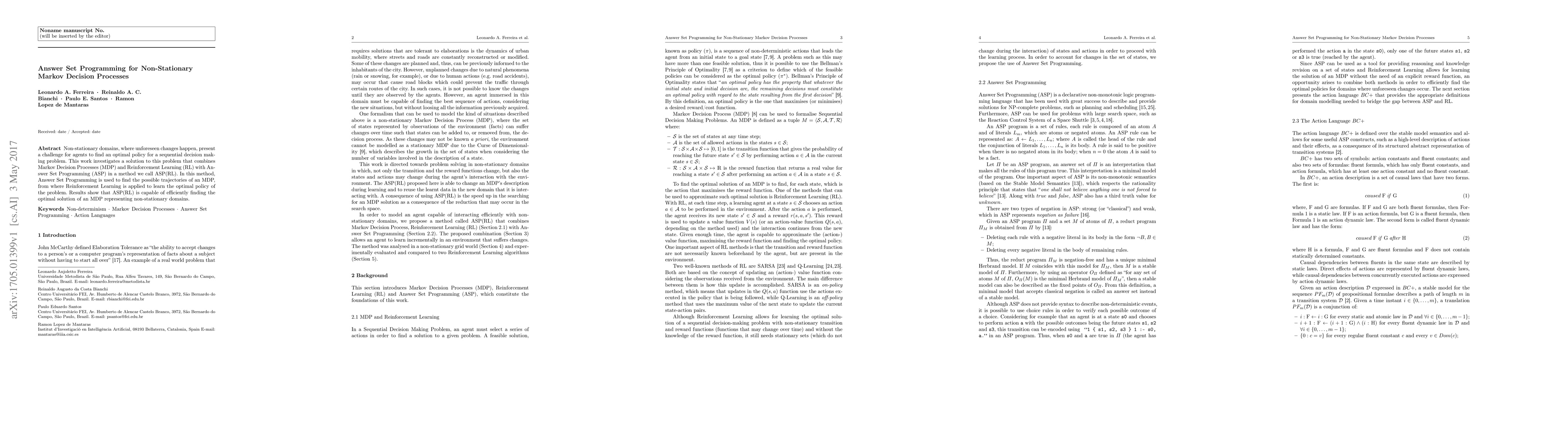 Researchers develop a new method called ASP(RL) that uses Answer Set Programming to find possible trajectories in Markov Decision Processes, then applies Reinforcement Learning to learn an optimal policy for non-stationary domains.