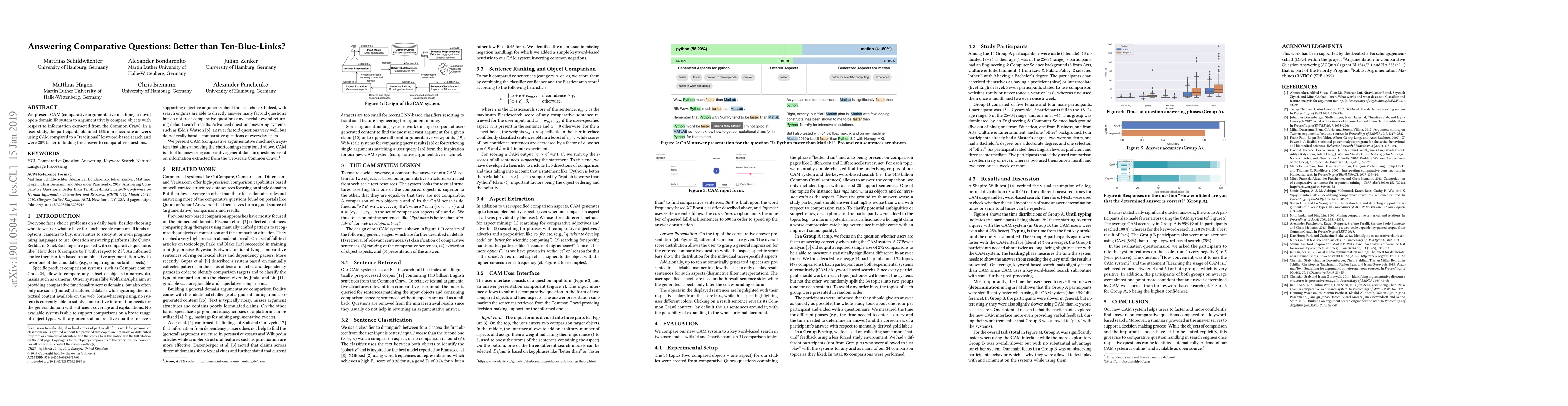 The research introduces CAM, an IR system for argumentatively comparing objects using Common Crawl data. User studies show CAM provides 15% more accurate answers than keyword-based search and is 20% faster for comparative questions.