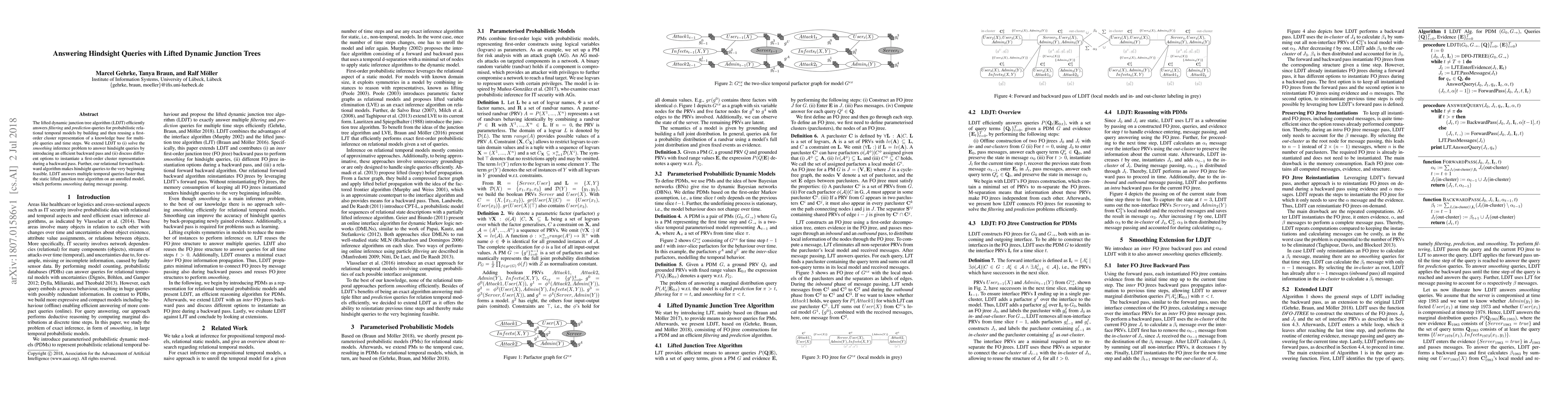 The lifted dynamic junction tree algorithm (LDJT) efficiently answers filtering and prediction queries for probabilistic relational temporal models by building and then reusing a first-order cluster representation of a knowledge base for multiple queries and time steps. We extend LDJT to (i) solve the smoothing inference problem to answer hindsight queries by introducing an efficient backward pass and (ii) discuss different options to instantiate a first-order cluster representation during a backward pass. Further, our relational forward backward algorithm makes hindsight queries to the very beginning feasible. LDJT answers multiple temporal queries faster than the static lifted junction tree algorithm on an unrolled model, which performs smoothing during message passing.