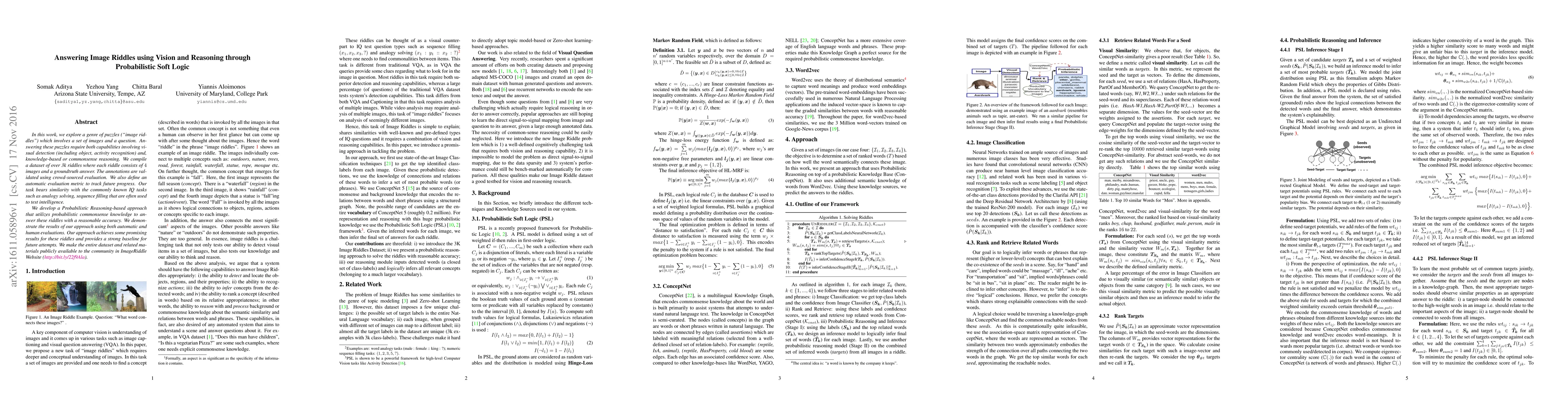 This paper presents a method for solving "image riddles" that require both visual detection and commonsense reasoning. It introduces a dataset of over 3,000 riddles and a probabilistic reasoning approach to tackle these puzzles, achieving promising results validated by both automatic and human evaluations.