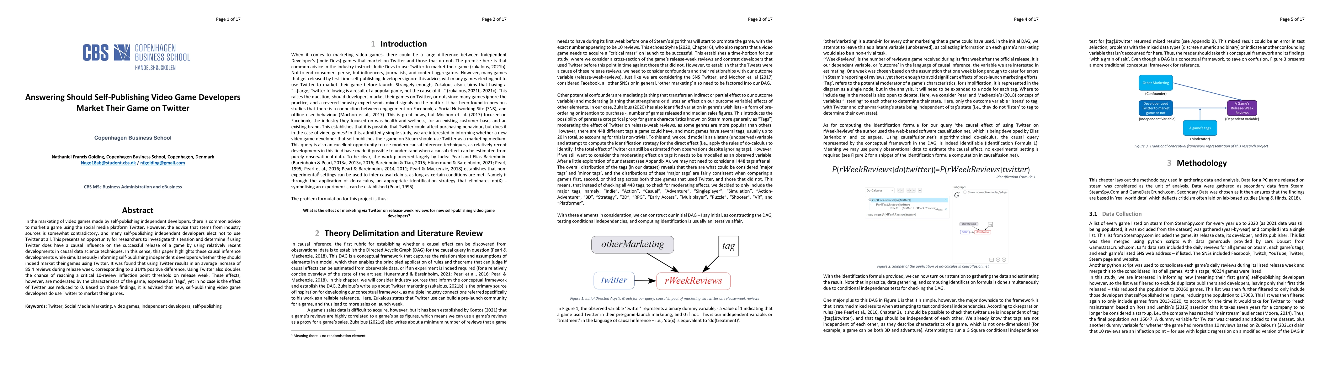 In the marketing of video games made by self-publishing, independent developers, there is common advice to market a game using the social media platform Twitter. However, the advice that stems from industry sources is somewhat contradictory, and many self-publishing independent developers elect not to use Twitter at all. This presents an opportunity for researchers to investigate this tension and determine if using Twitter does have a causal influence on the successful release of a game by using relatively recent developments in causal data science techniques. In this sense, this paper highlights these causal inference developments while simultaneously informing self-publishing independent developers whether they should indeed market their games using Twitter. It was found that using Twitter results in an average increase of 85.4 reviews during release week, corresponding to a 314% positive difference. Using Twitter also doubles the chance of reaching a critical 10-review inflection point threshold on release week. These effects, however, are moderated by the characteristics of the game, expressed as 'tags', yet in no case is the effect of Twitter use reduced to 0. Based on these findings, it is advised that new, self-publishing video game developers do use Twitter to market their games.