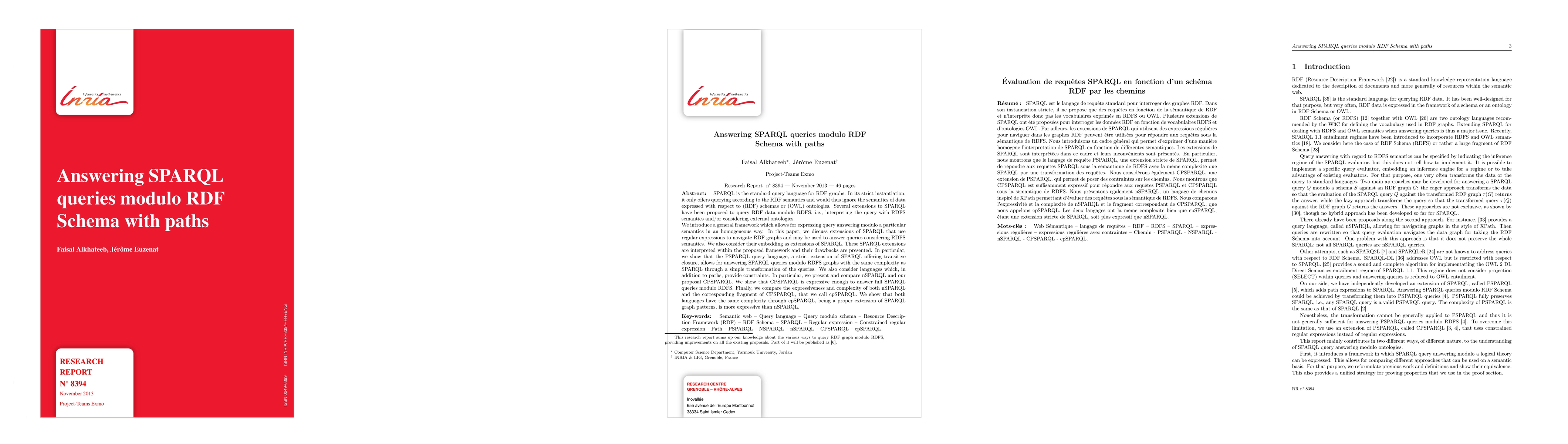 This paper proposes a framework for answering SPARQL queries considering RDFS semantics using extended SPARQL variants, notably PSPARQL and CPSPARQL. PSPARQL leverages transitive closure for query transformation maintaining SPARQL complexity, while CPSPARQL extends SPARQL graph patterns to be more expressive than nSPARQL but maintains the same complexity.