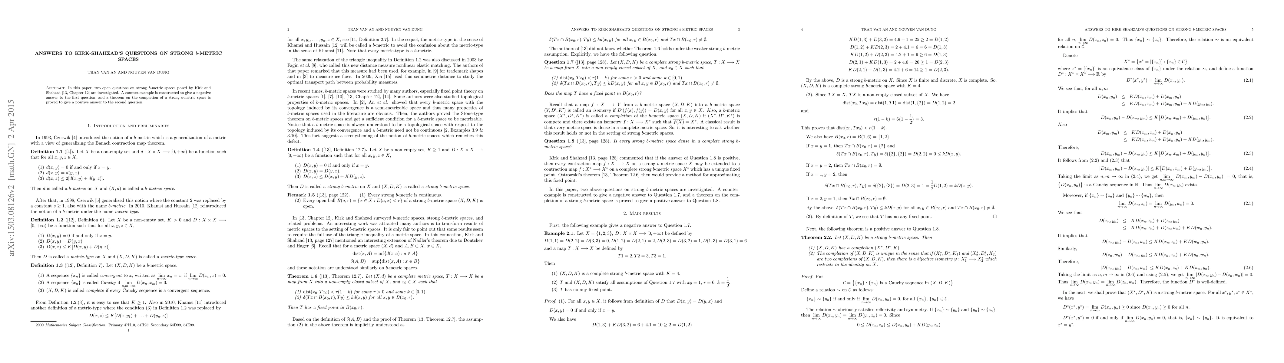 In this paper, two open questions on strong $b$-metric spaces posed by Kirk and Shahzad [11, Chapter 12] are investigated. A counter-example is constructed to give a negative answer to the first question, and a theorem on the completion of a strong $b$-metric space is proved to give a positive answer to the second question.