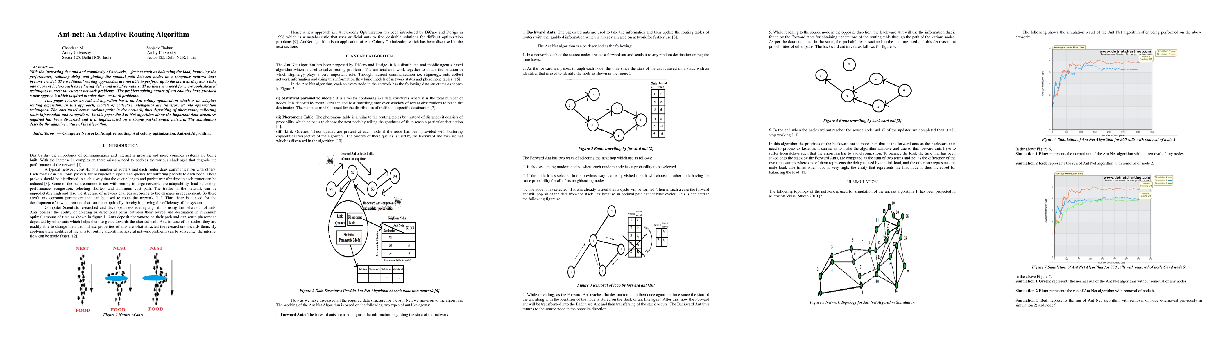 With the increasing demand and complexity of networks, factors such as balancing the load, improving the performance, reducing delay and finding optimal path between nodes in a computer network have become crucial. The traditional routing approaches are not able to perform up to the mark as they do not take into account factors such as reducing delay and adaptive nature. Thus there is a need for more sophisticated techniques to meet the current network problems. This paper focuses on Ant-net algorithm based on Ant colony optimization which is an adaptive routing algorithm.In this approach, models of collective intelligence are transformed into optimization techniques. The ants travel across various paths in the network, thus depositing of pheromone, collecting route information and congestion. In this paper the Ant-Net algorithm along the important data structures required has been discussed and it is implemented on a simple packet switch network. The simulations describe the adaptive nature of the algorithm