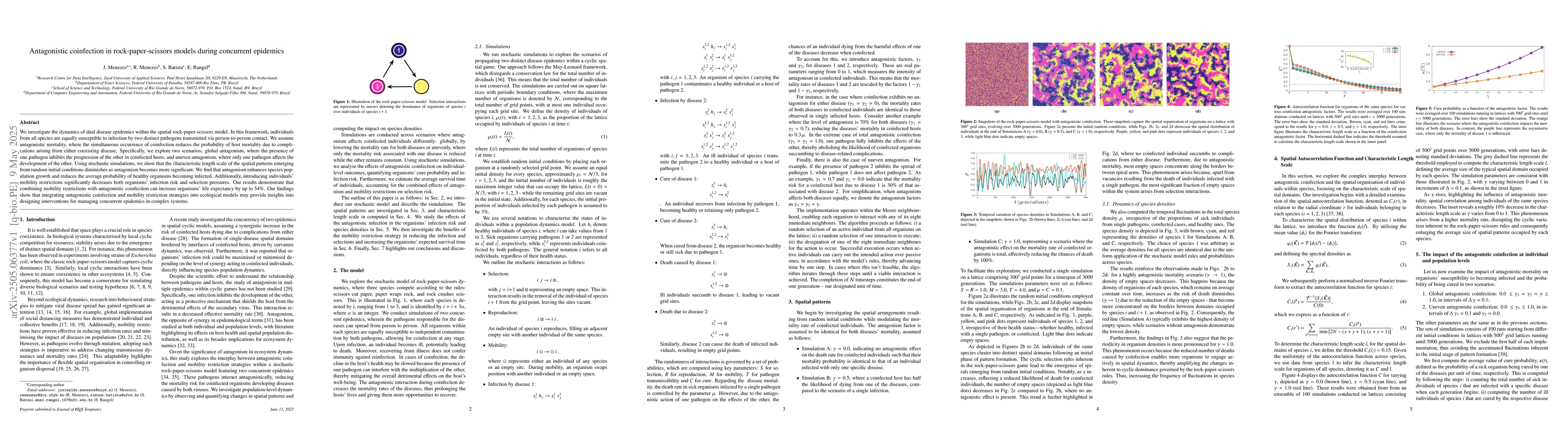 The paper presents a novel approach to understanding antagonistic coinfection in rock-paper-scissors models during concurrent epidemics, incorporating mobility restrictions and different levels of antagonism.