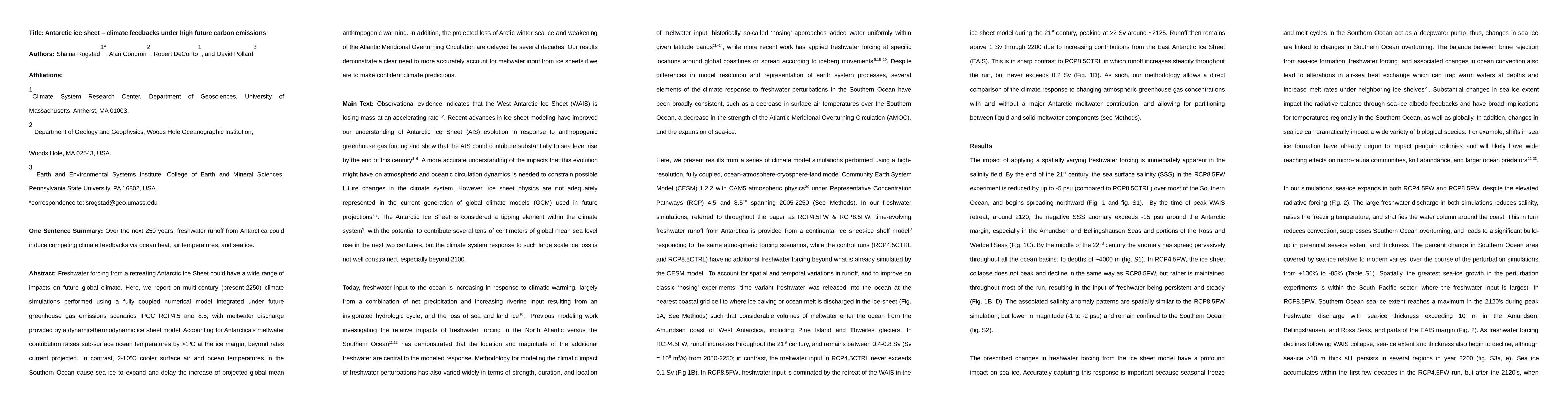 This paper explores the climate feedbacks from a retreating Antarctic Ice Sheet under high future carbon emissions, revealing significant impacts on global climate through multi-century simulations. The study finds that meltwater from Antarctica can delay projected global warming by expanding Southern Ocean sea ice, but also raises sub-surface ocean temperatures more than previously estimated.