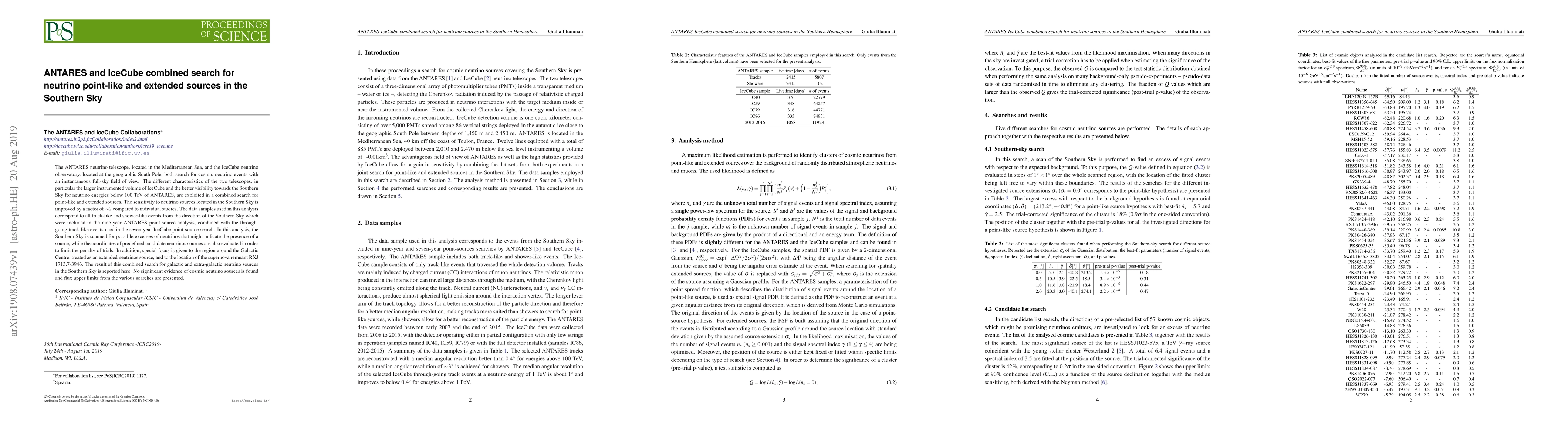 This paper combines data from the ANTARES and IceCube neutrino observatories to search for neutrino sources in the Southern Sky, improving sensitivity by a factor of $\sim$2. The analysis finds no significant evidence of cosmic neutrino sources, presenting upper limits on their flux.