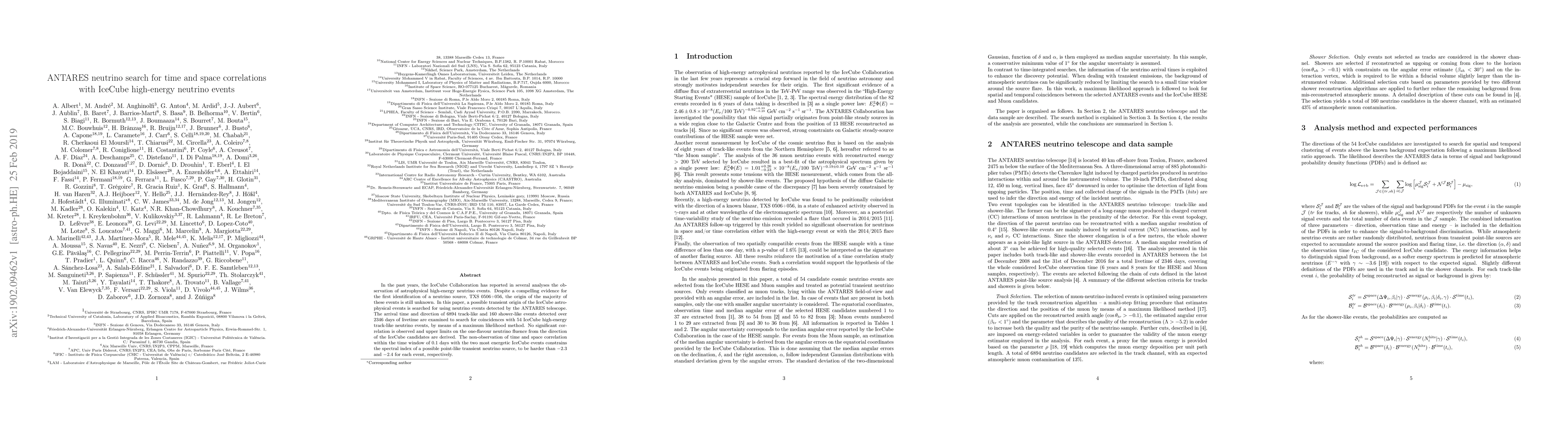 The paper presents a detailed analysis method for correlating neutrino events detected by ANTARES and IceCube, using a maximum likelihood approach to estimate signal and background probability density functions.