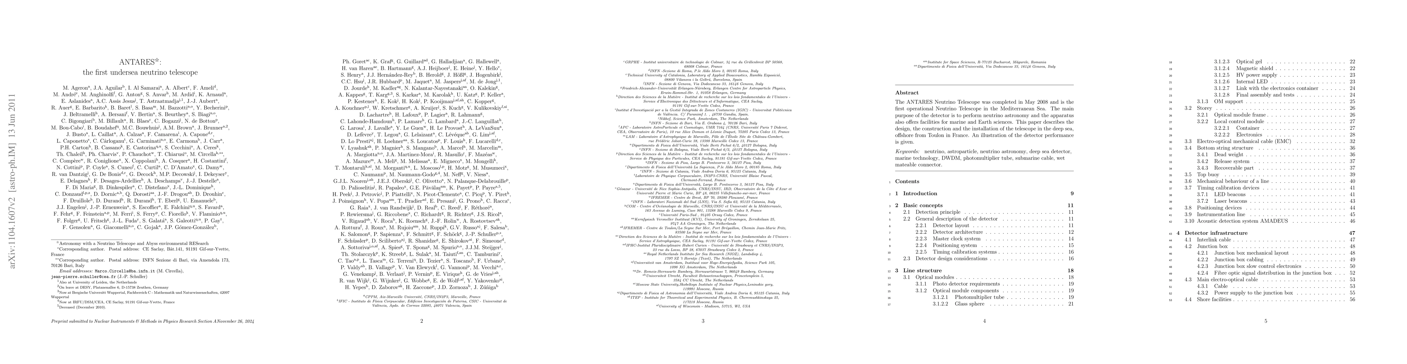 The ANTARES Neutrino Telescope, operational since 2008, is the first undersea neutrino detector in the Mediterranean Sea, designed for neutrino astronomy and marine science. The paper details its construction and installation offshore from Toulon, France, along with an overview of its performance.