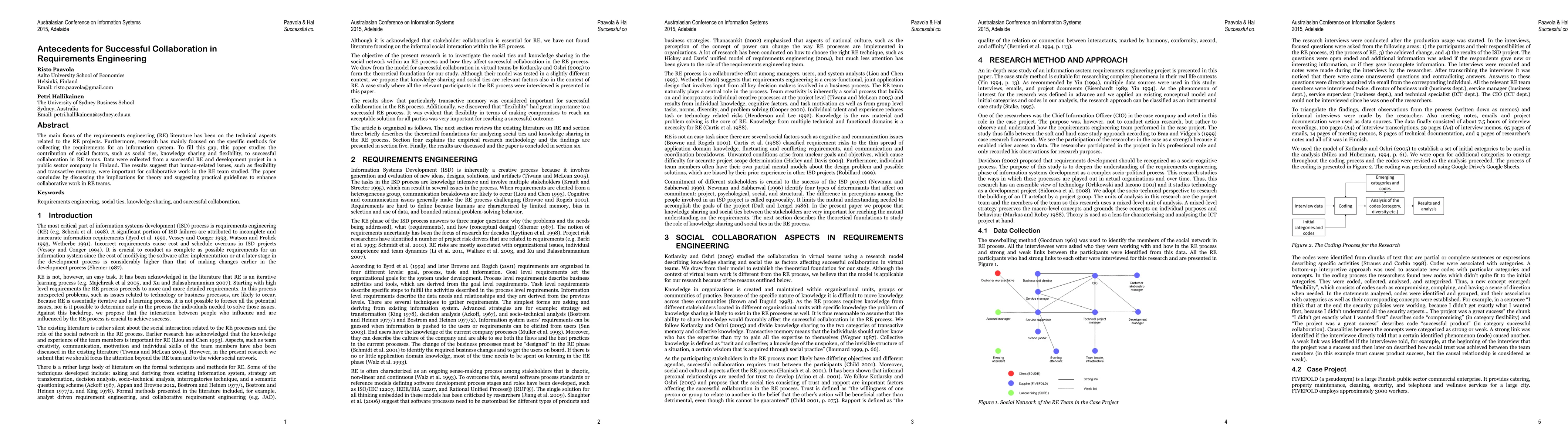 This research contributes to both RE and project management literature by highlighting the importance of social ties, knowledge sharing, and flexibility in successful RE processes, which can inform future research and practical applications in similar contexts.