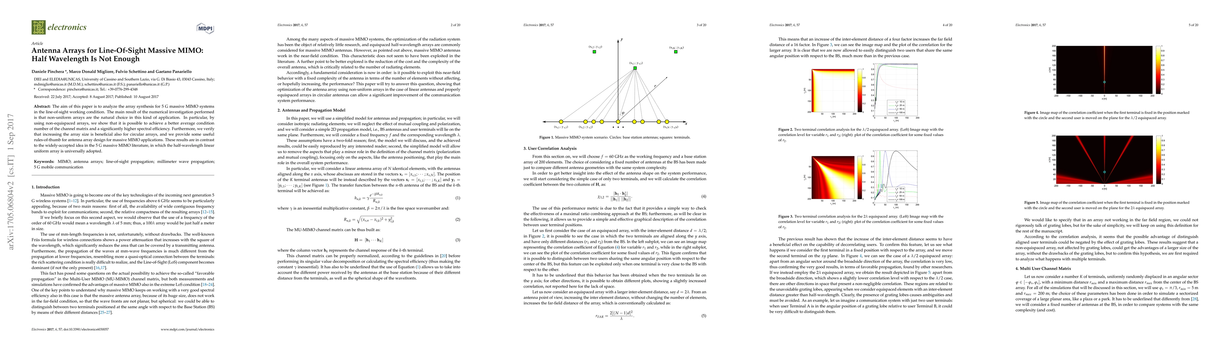 The aim of this paper is to analyze the array synthesis for 5 G massive MIMO systems in the line-of-sight working condition. The main result of the numerical investigation performed is that non-uniform arrays are the natural choice in this kind of application. In particular, by using non-equispaced arrays, we show that it is possible to achieve a better average condition number of the channel matrix and a significantly higher spectral efficiency. Furthermore, we verify that increasing the array size is beneficial also for circular arrays, and we provide some useful rules-of-thumb for antenna array design for massive MIMO applications. These results are in contrast to the widely-accepted idea in the 5 G massive MIMO literature, in which the half-wavelength linear uniform array is universally adopted.