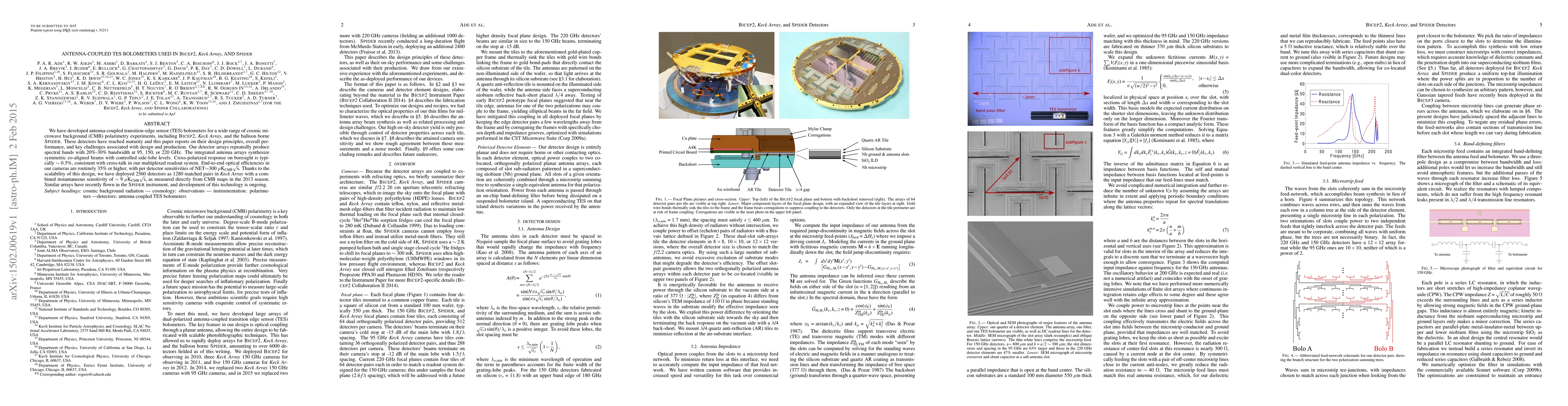 This paper details the design and performance of antenna-coupled transition-edge sensor (TES) bolometers used in CMB polarimetry experiments like BICEP2, Keck Array, and SPIDER. These detectors achieve high optical efficiencies and sensitivities, enabling scalable deployment of 2560 detectors with impressive overall performance.