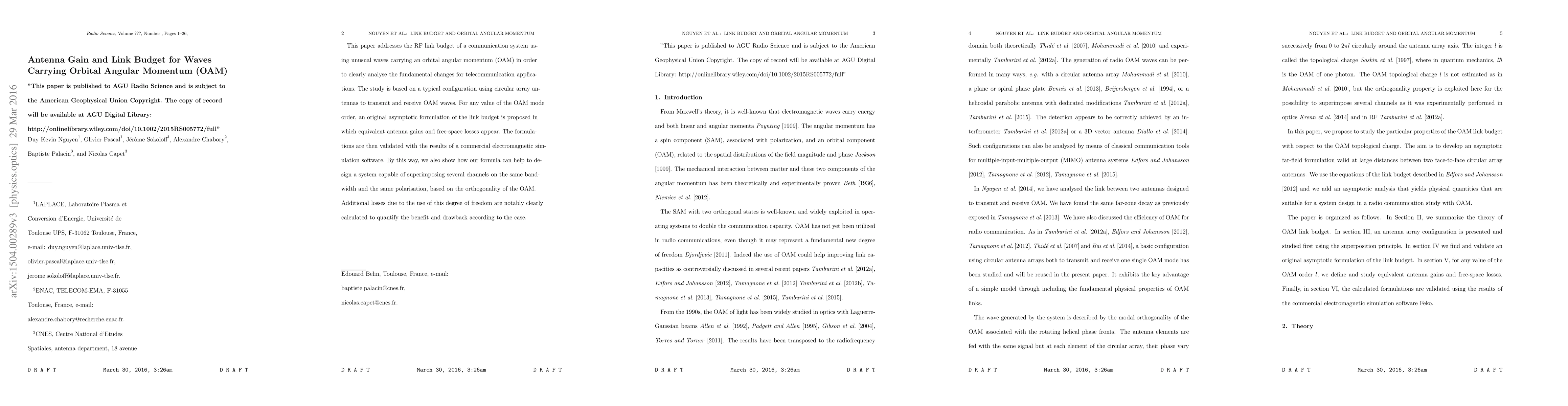 This paper addresses the RF link budget of a communication system using unusual waves carrying an orbital angular momentum (OAM) in order to clearly analyse the fundamental changes for telecommunication applications. The study is based on a typical configuration using circular array antennas to transmit and receive OAM waves. For any value of the OAM mode order, an original asymptotic formulation of the link budget is proposed in which equivalent antenna gains and free-space losses appear. The formulations are then validated with the results of a commercial electromagnetic simulation software. By this way, we also show how our formula can help to design a system capable of superimposing several channels on the same bandwidth and the same polarisation, based on the orthogonality of the OAM. Additional losses due to the use of this degree of freedom are notably clearly calculated to quantify the benefit and drawback according to the case.