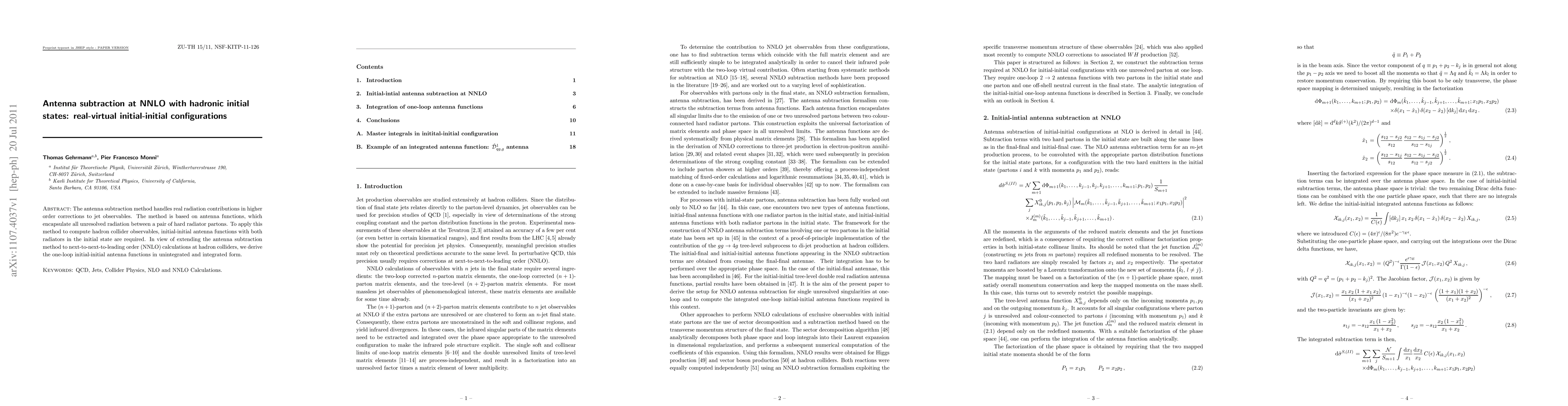 This paper develops the antenna subtraction method for real radiation contributions in NNLO calculations for hadron colliders, focusing on initial-initial configurations. It derives one-loop initial-initial antenna functions in both unintegrated and integrated forms to extend the method for higher-order corrections.