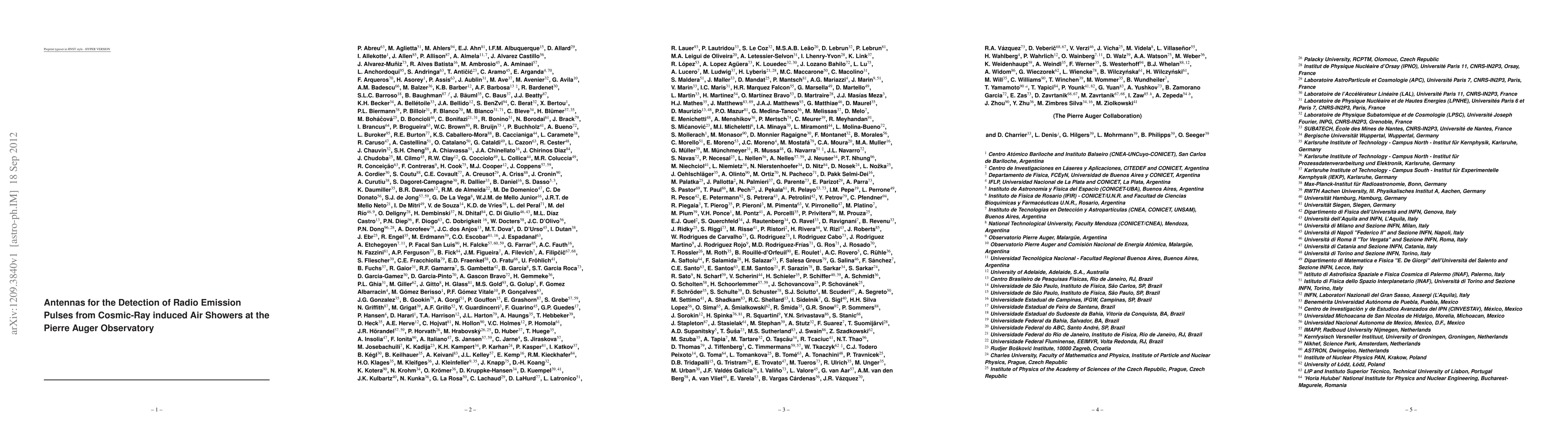 Researchers at the Pierre Auger Observatory studied antenna design for detecting cosmic-ray induced air showers using radio signals, aiming to optimize performance for 160 individual detector stations.