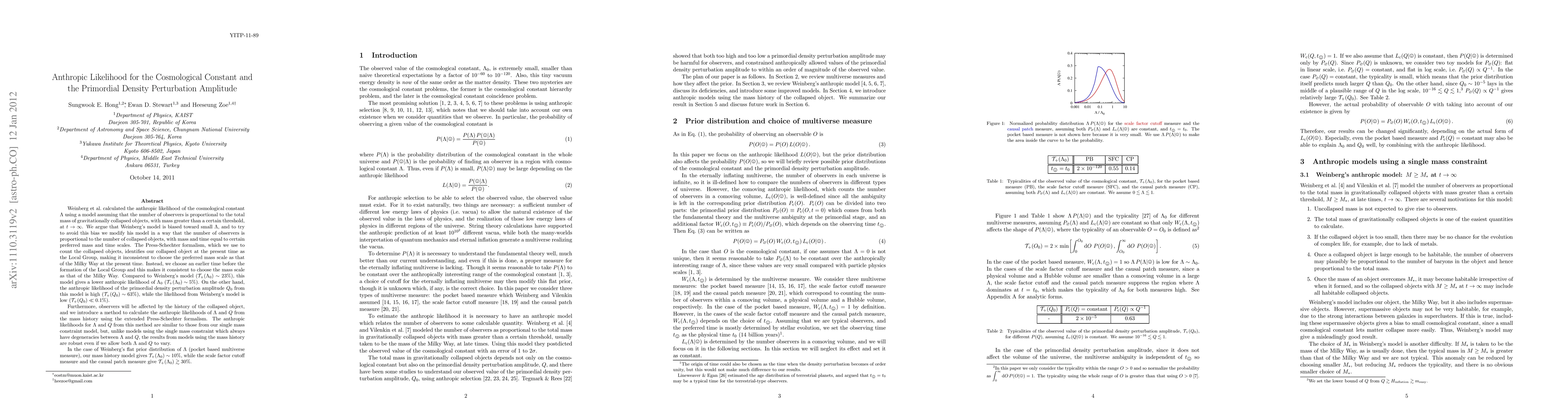 This paper modifies Weinberg's model to calculate the anthropic likelihood of the cosmological constant (\(\Lambda\)) and primordial density perturbation amplitude, finding a lower likelihood for \(\Lambda\) but a higher one for the density perturbation. The new model, using mass history, provides robust results without degeneracies between \(\Lambda\) and the density amplitude.