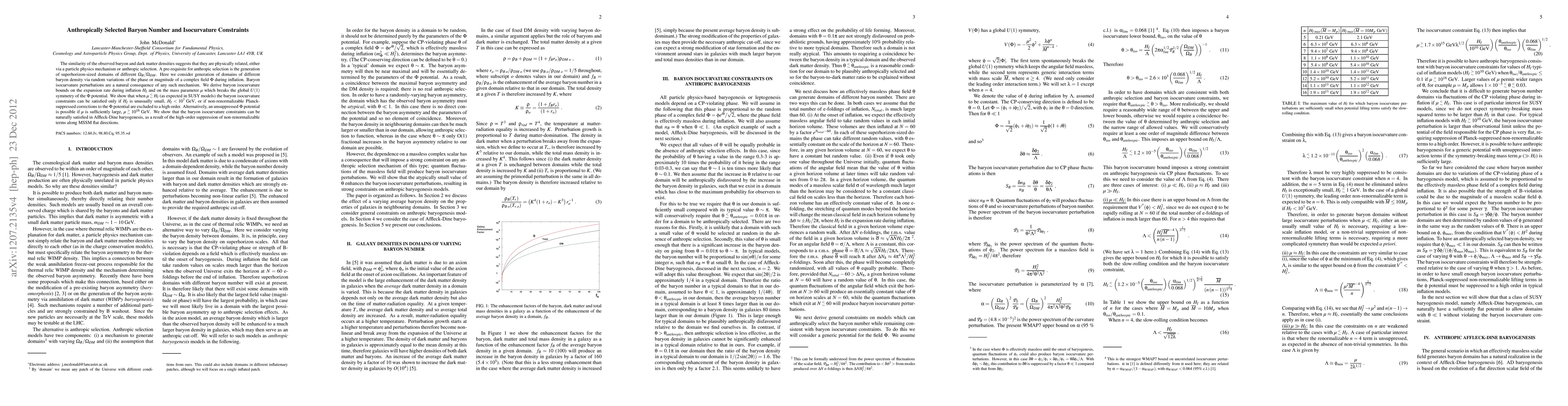 The similarity of the observed baryon and dark matter densities suggests that they are physically related, either via a particle physics mechanism or anthropic selection. A pre-requisite for anthropic selection is the generation of superhorizon-sized domains of different Omega_{B}/Omega_{DM}. Here we consider generation of domains of different baryon density via random variations of the phase or magnitude of a complex field Phi during inflation. Baryon isocurvature perturbations are a natural consequence of any such mechanism. We derive baryon isocurvature bounds on the expansion rate during inflation H_{I} and on the mass parameter mu which breaks the global U(1) symmetry of the Phi potential. We show that when mu < H_{I} (as expected in SUSY models) the baryon isocurvature constraints can be satisfied only if H_{I} is unusually small, H_{I} < 10^{7} GeV, or if non-renormalizable Planck-suppressed corrections to the Phi potential are excluded to a high order. Alternatively, an unsuppressed Phi potential is possible if mu is sufficiently large, mu > 10^{16} GeV. We show that the baryon isocurvature constraints can be naturally satisfied in Affleck-Dine baryogenesis, as a result of the high-order suppression of non-renormalizable terms along MSSM flat directions.