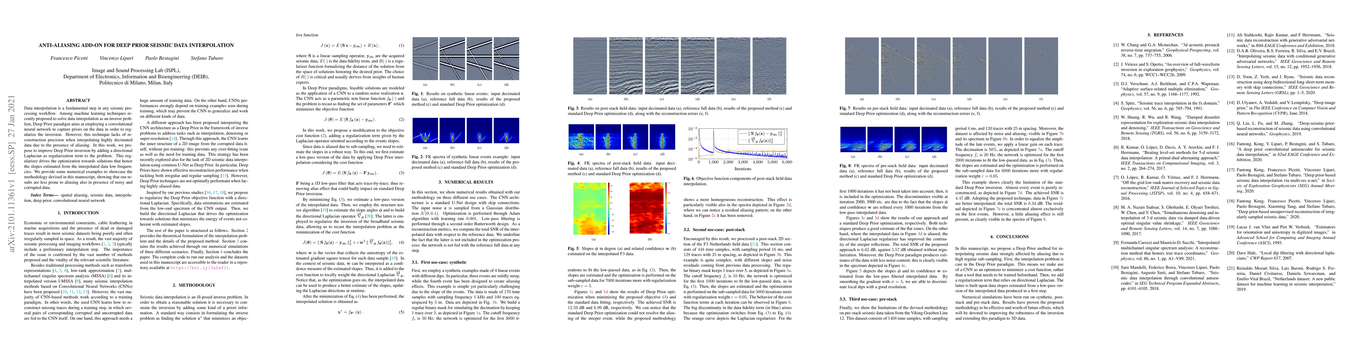 Data interpolation is a fundamental step in any seismic processing workflow. Among machine learning techniques recently proposed to solve data interpolation as an inverse problem, Deep Prior paradigm aims at employing a convolutional neural network to capture priors on the data in order to regularize the inversion. However, this technique lacks of reconstruction precision when interpolating highly decimated data due to the presence of aliasing. In this work, we propose to improve Deep Prior inversion by adding a directional Laplacian as regularization term to the problem. This regularizer drives the optimization towards solutions that honor the slopes estimated from the interpolated data low frequencies. We provide some numerical examples to showcase the methodology devised in this manuscript, showing that our results are less prone to aliasing also in presence of noisy and corrupted data.