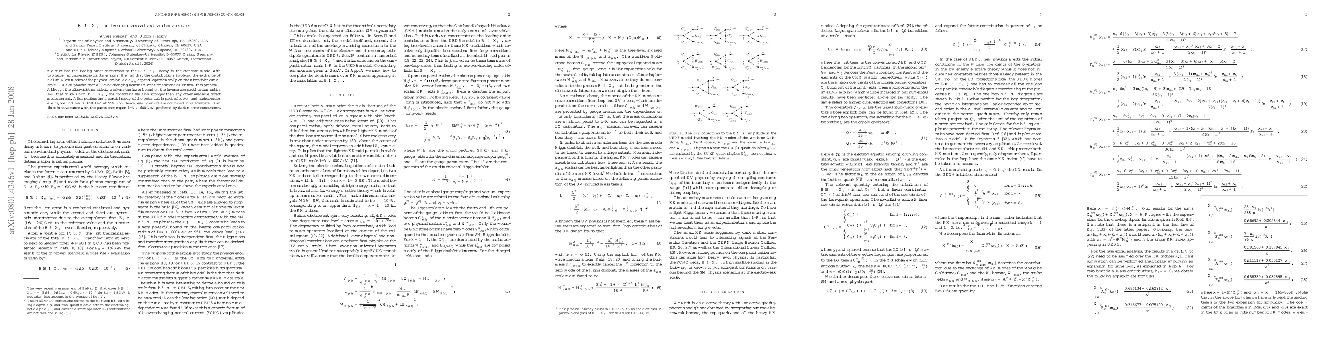 This paper calculates leading order corrections to the anti-B --> X(s) gamma decay in the standard model with two universal extra dimensions, finding that contributions from Kaluza-Klein modes depend logarithmically on the ultraviolet cut-off scale. The study concludes with a lower bound of 1/R > 650 GeV for the inverse compactification radius, conflicting with dark matter constraints.
