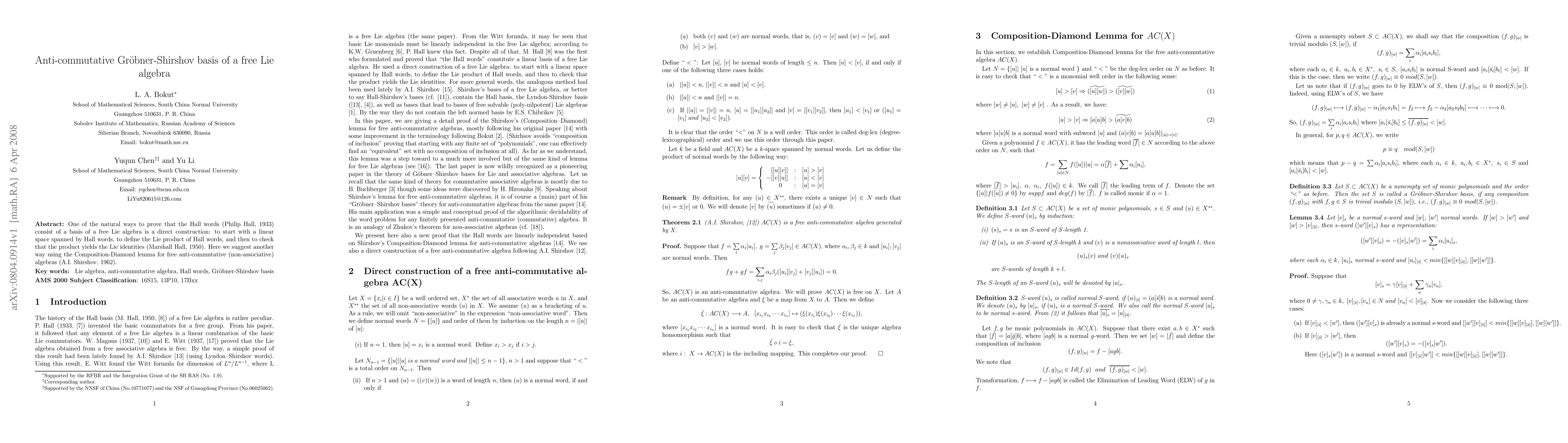 The paper introduces a Gröbner-Shirshov basis for free anti-commutative algebras and demonstrates its equivalence to the free Lie algebra generated by a set \( X \), providing a novel perspective on the structure of free Lie algebras.