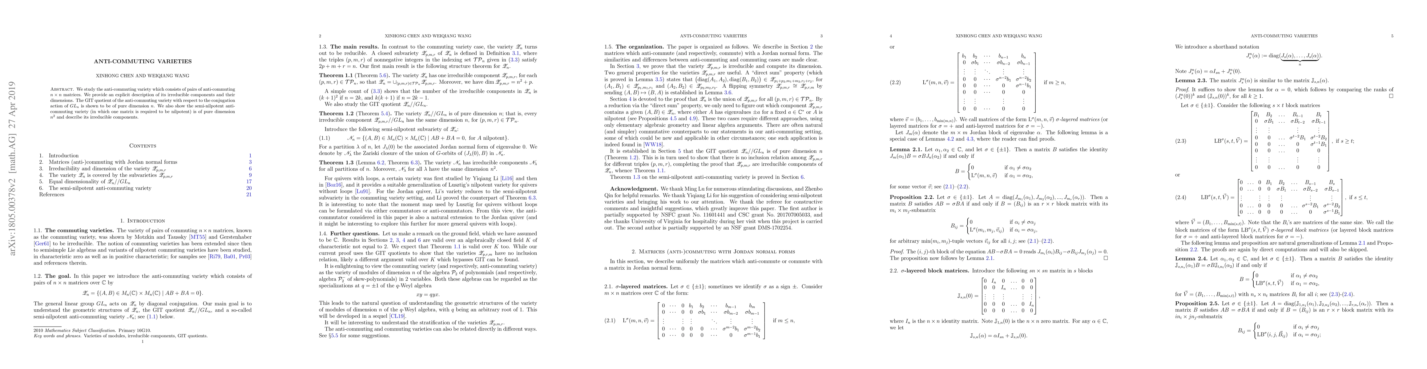 Summary: The research explores the anti-commuting variety of $n\times n$ matrices, detailing its irreducible components and dimensions, and shows the GIT quotient under $GL_n$ has pure dimension $n$. It also examines the semi-nilpotent variant, proving it has pure dimension $n^2$ and describes its irreducible components.