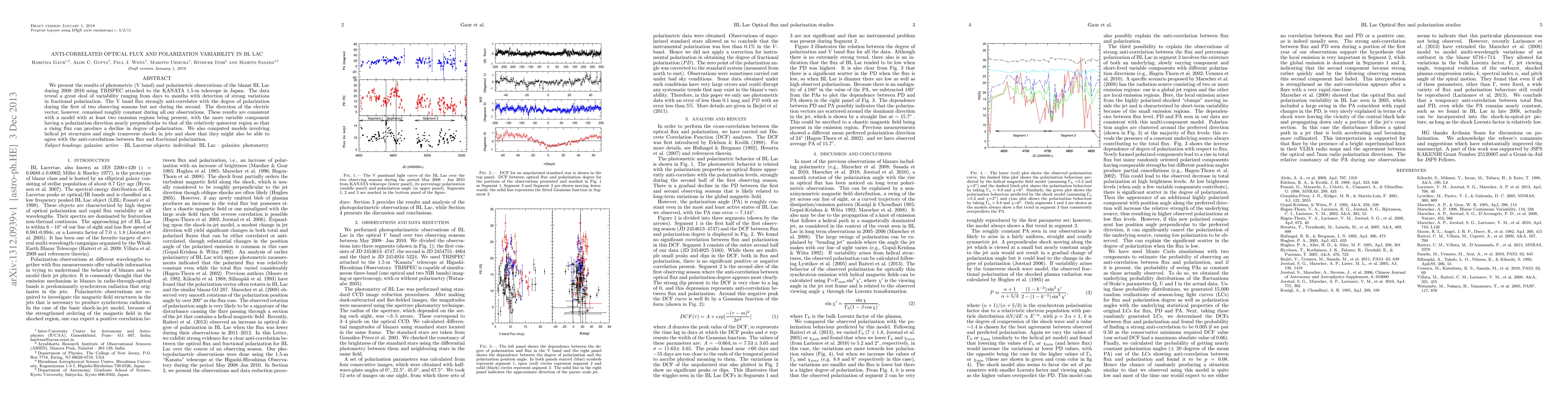 Astronomers observed BL Lac, a type of blazar, and found strong variability in brightness and polarization over days to months. The findings suggest at least two emission regions with one region's polarization direction opposing the other.
