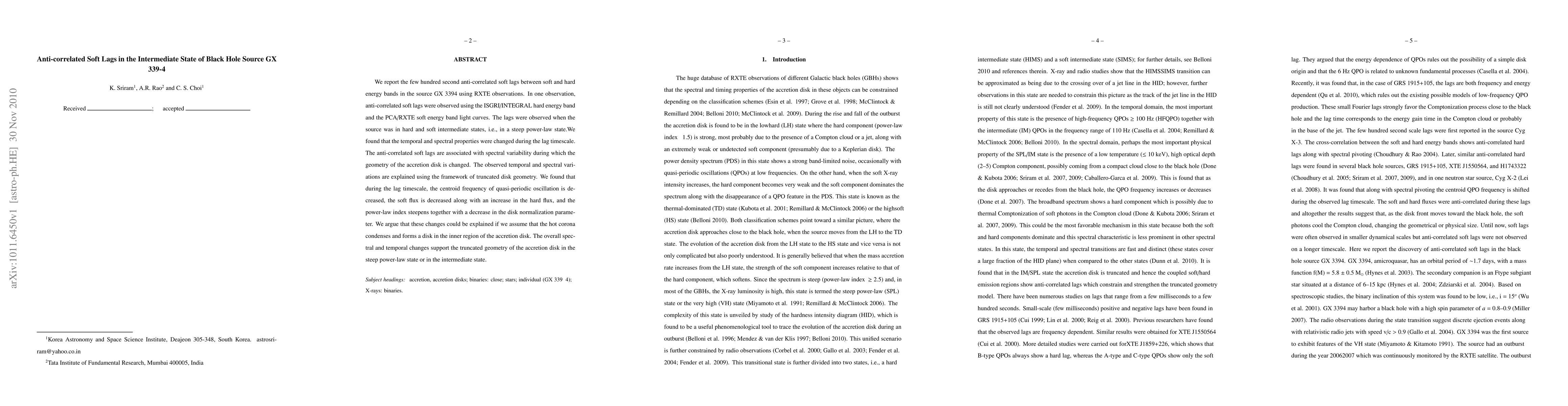 This study reports anti-correlated soft lags between soft and hard energy bands in the black hole source GX 339-4, observed during its intermediate state. The observed spectral and temporal variations suggest a truncated accretion disk geometry, where the hot corona condenses and forms a disk in the inner region.