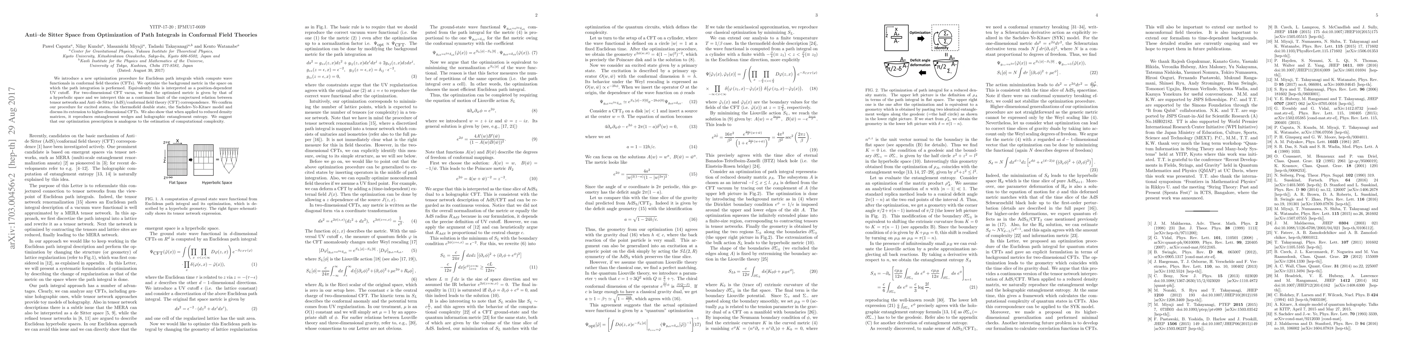 We introduce a new optimization procedure for Euclidean path integrals which compute wave functionals in conformal field theories (CFTs). We optimize the background metric in the space on which the path integration is performed. Equivalently this is interpreted as a position-dependent UV cutoff. For two-dimensional CFT vacua, we find the optimized metric is given by that of a hyperbolic space and we interpret this as a continuous limit of the conjectured relation between tensor networks and Anti--de Sitter (AdS)/conformal field theory (CFT) correspondence. We confirm our procedure for excited states, the thermofield double state, the Sachdev-Ye-Kitaev model and discuss its extension to higher-dimensional CFTs. We also show that when applied to reduced density matrices, it reproduces entanglement wedges and holographic entanglement entropy. We suggest that our optimization prescription is analogous to the estimation of computational complexity.
