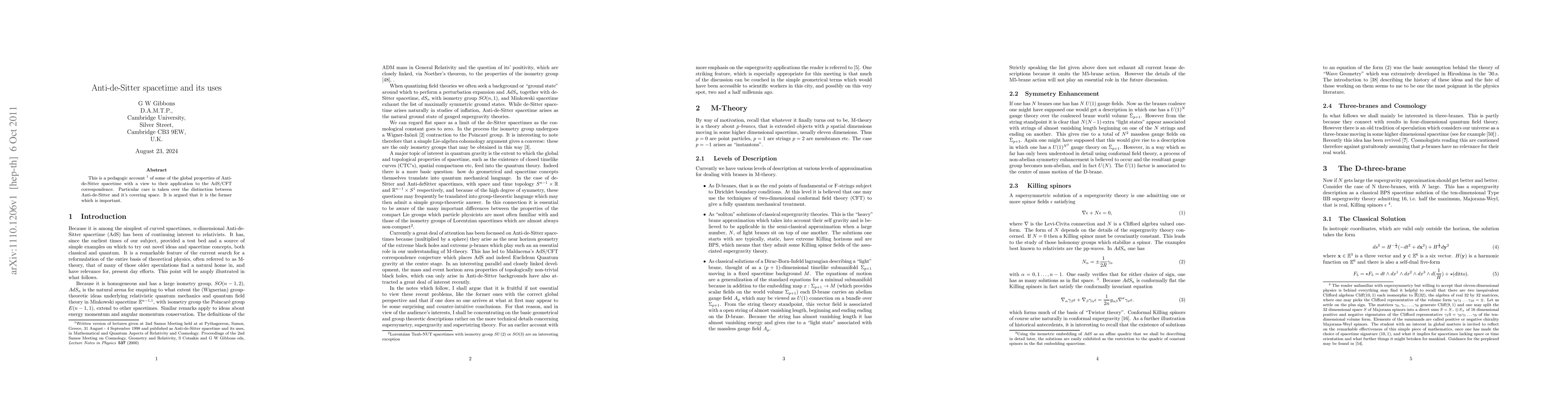 This paper provides a pedagogical overview of the global properties of Anti-de-Sitter (AdS) spacetime, emphasizing its application to the AdS/CFT correspondence, and carefully distinguishes AdS from its covering space. The written lectures originally presented at the 2nd Samos Meeting in 1998 were published in a collection of relativity and cosmology proceedings.