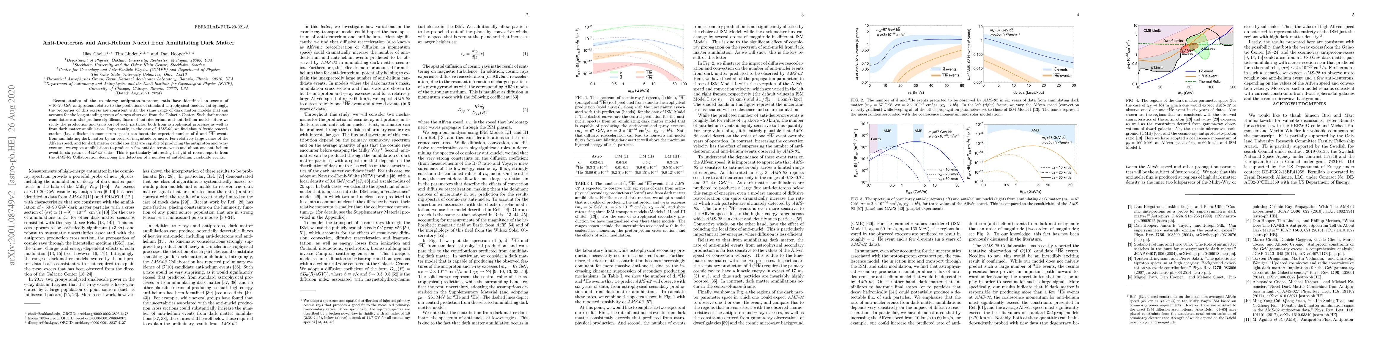 Recent studies of the cosmic-ray antiproton-to-proton ratio have identified an excess of $\sim$10-20 GeV antiprotons relative to the predictions of standard astrophysical models. Intriguingly, the properties of this excess are consistent with the same range of dark matter models that can account for the long-standing excess of $\gamma$-rays observed from the Galactic Center. Such dark matter candidates can also produce significant fluxes of anti-deuterium and anti-helium nuclei. Here we study the production and transport of such particles, both from astrophysical processes as well as from dark matter annihilation. Importantly, in the case of AMS-02, we find that Alfv\'{e}nic reacceleration (i.e., diffusion in momentum space) can boost the expected number of $\bar{\rm d}$ and ${}^{3}\overline{\textrm{He}}$ events from annihilating dark matter by an order of magnitude or more. For relatively large values of the Alfv\'{e}n speed, and for dark matter candidates that are capable of producing the antiproton and $\gamma$-ray excesses, we expect annihilations to produce a few anti-deuteron events and about one anti-helium event in six years of AMS-02 data. This is particularly interesting in light of recent reports from the AMS-02 Collaboration describing the detection of a number of anti-helium candidate events.