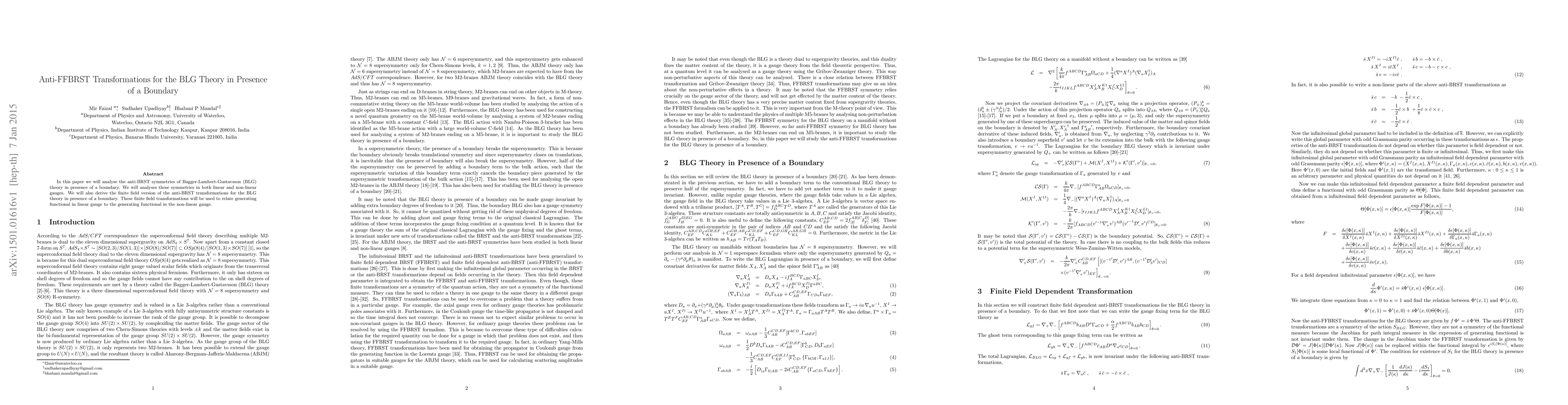 This paper investigates the anti-BRST symmetries of BLG theory with a boundary, examining both linear and non-linear gauges. It derives finite field anti-BRST transformations to relate generating functionals between these gauges.