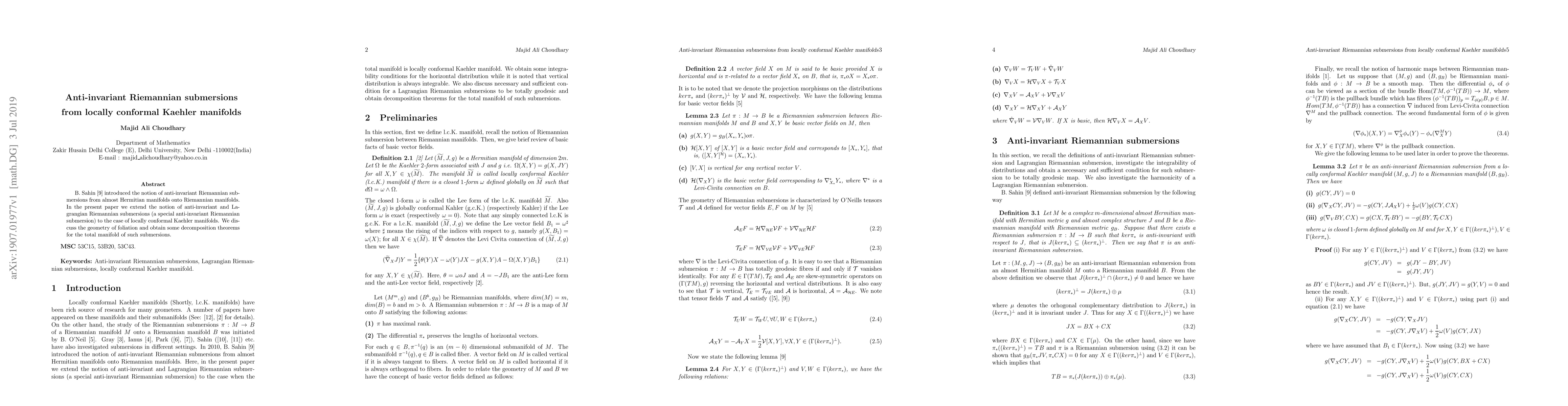 This paper extends the concept of anti-invariant and Lagrangian Riemannian submersions to locally conformal Kähler manifolds, exploring their geometric properties and deriving decomposition theorems for the total manifold. The work builds on B. Sahin's original notion from almost Hermitian manifolds.