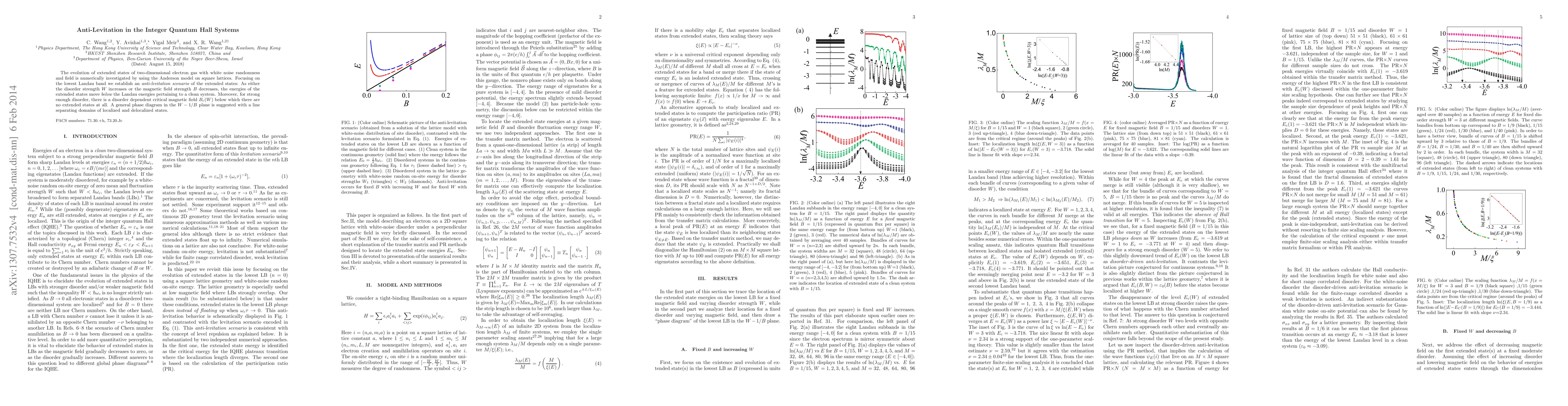 This paper investigates numerically the dynamics of electrons in a disordered integer quantum Hall system, revealing an anti-levitation scenario where extended states' energies drop below clean system Landau levels with increased disorder or decreased magnetic field. A critical magnetic field is found below which no extended states exist, suggesting a phase diagram with a boundary separating localized and delocalized states.