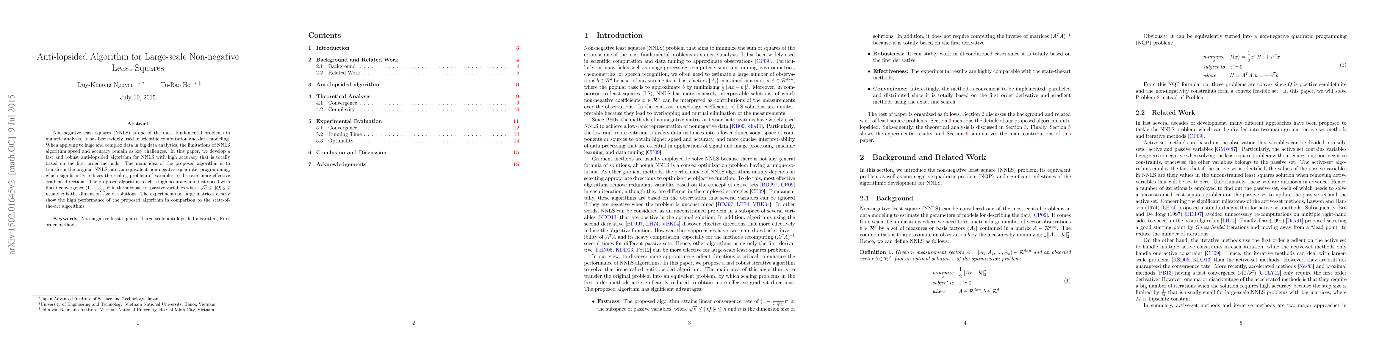 This paper introduces an efficient 'anti-lopsided' algorithm for solving large-scale non-negative least squares (NNLS) problems. It transforms NNLS into a non-negative quadratic programming, addressing variable scaling issues. The algorithm ensures high accuracy and linear convergence, outperforming existing methods in experiments with big data.