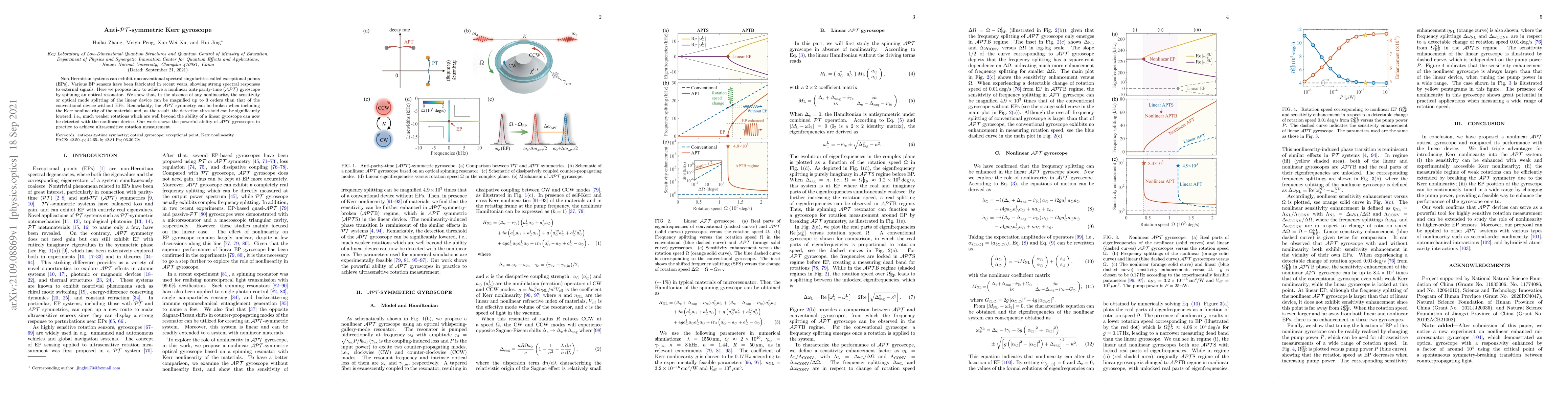 This paper proposes a nonlinear anti-parity-time ($\mathcal{APT}$) symmetric Kerr gyroscope that leverages exceptional points to enhance sensitivity. It demonstrates that the device can detect much weaker rotations compared to conventional gyroscopes, achieving up to 3 orders of magnitude higher sensitivity.