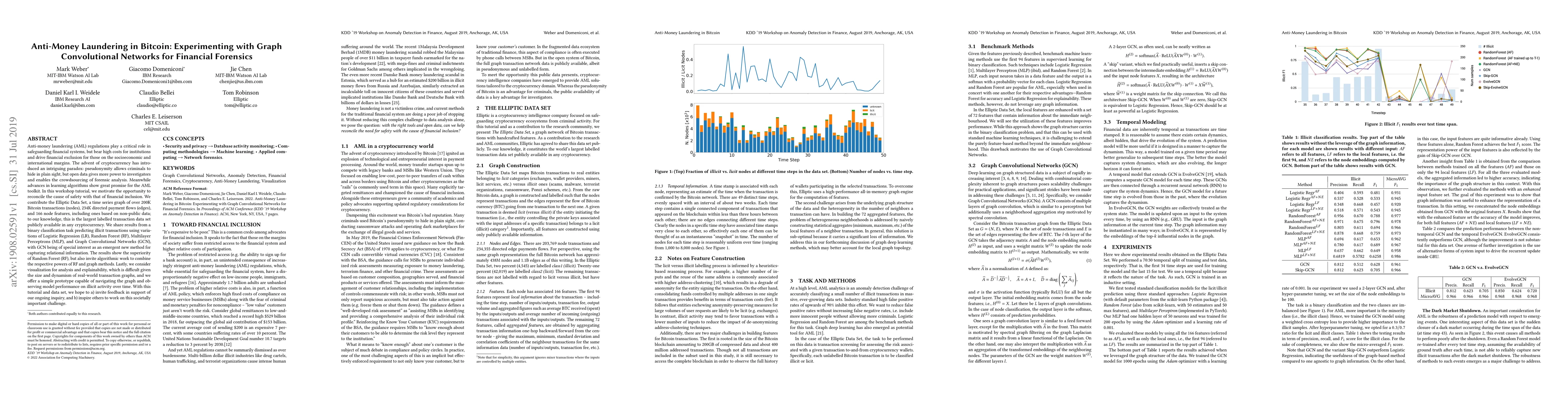 Anti-money laundering (AML) regulations play a critical role in safeguarding financial systems, but bear high costs for institutions and drive financial exclusion for those on the socioeconomic and international margins. The advent of cryptocurrency has introduced an intriguing paradox: pseudonymity allows criminals to hide in plain sight, but open data gives more power to investigators and enables the crowdsourcing of forensic analysis. Meanwhile advances in learning algorithms show great promise for the AML toolkit. In this workshop tutorial, we motivate the opportunity to reconcile the cause of safety with that of financial inclusion. We contribute the Elliptic Data Set, a time series graph of over 200K Bitcoin transactions (nodes), 234K directed payment flows (edges), and 166 node features, including ones based on non-public data; to our knowledge, this is the largest labelled transaction data set publicly available in any cryptocurrency. We share results from a binary classification task predicting illicit transactions using variations of Logistic Regression (LR), Random Forest (RF), Multilayer Perceptrons (MLP), and Graph Convolutional Networks (GCN), with GCN being of special interest as an emergent new method for capturing relational information. The results show the superiority of Random Forest (RF), but also invite algorithmic work to combine the respective powers of RF and graph methods. Lastly, we consider visualization for analysis and explainability, which is difficult given the size and dynamism of real-world transaction graphs, and we offer a simple prototype capable of navigating the graph and observing model performance on illicit activity over time. With this tutorial and data set, we hope to a) invite feedback in support of our ongoing inquiry, and b) inspire others to work on this societally important challenge.