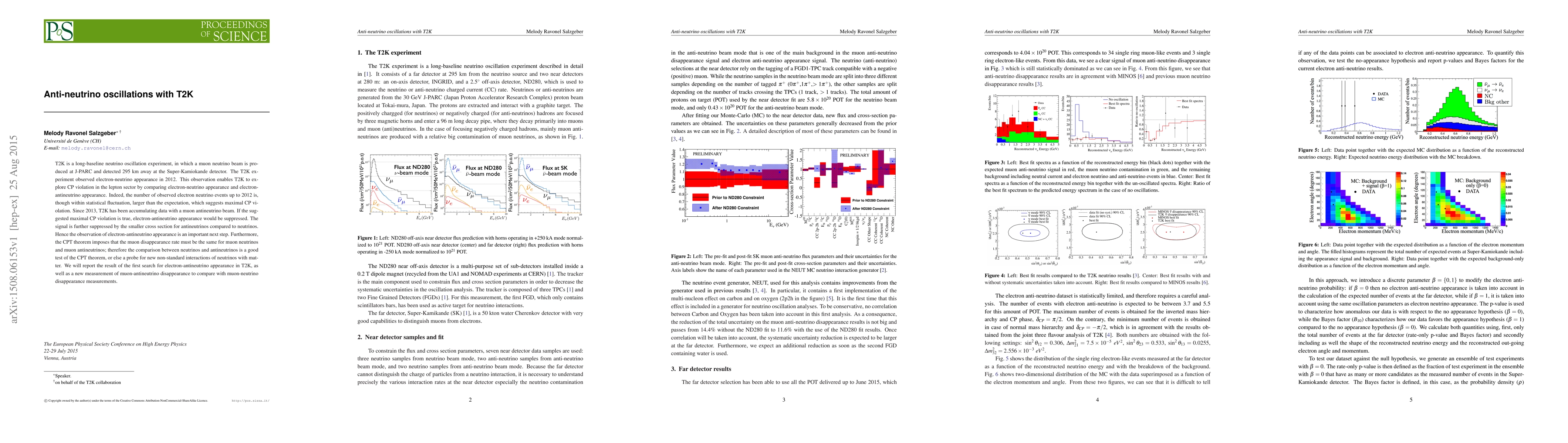 The T2K experiment investigates neutrino oscillations using a long-baseline beam, observing electron-neutrino appearance and aiming to detect electron-antineutrino appearance, which could indicate maximal CP violation and test the CPT theorem. Initial results suggest the potential for significant CP violation, while ongoing data collection seeks to confirm these findings and explore new physics beyond standard models.
