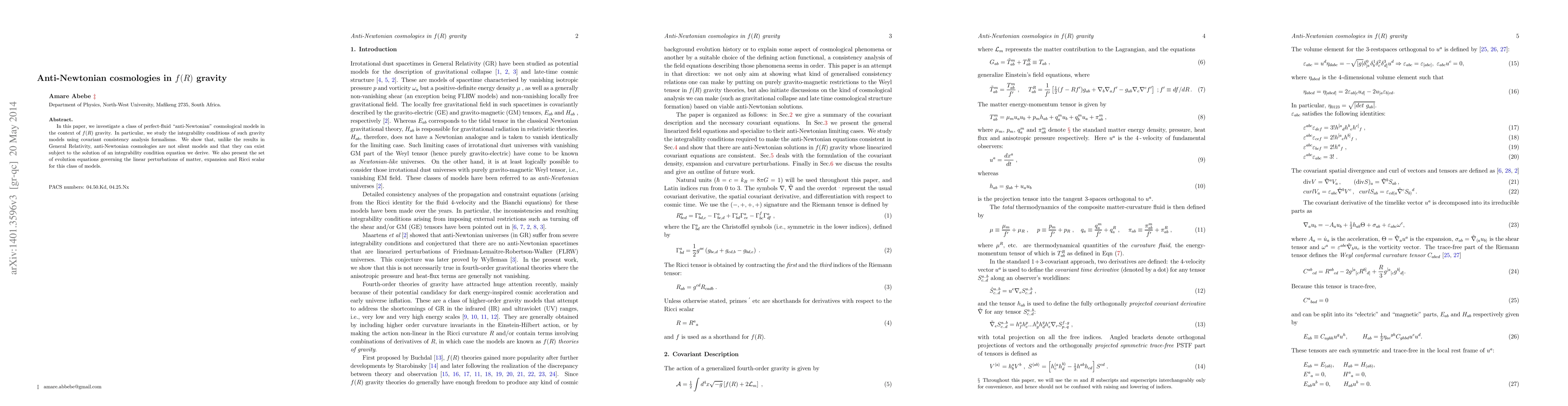 This paper explores perfect-fluid "anti-Newtonian" cosmological models within f(R) gravity, demonstrating that these models are not silent and can exist by solving a derived integrability condition. It also outlines the evolution equations for matter, expansion, and Ricci scalar perturbations for these models.