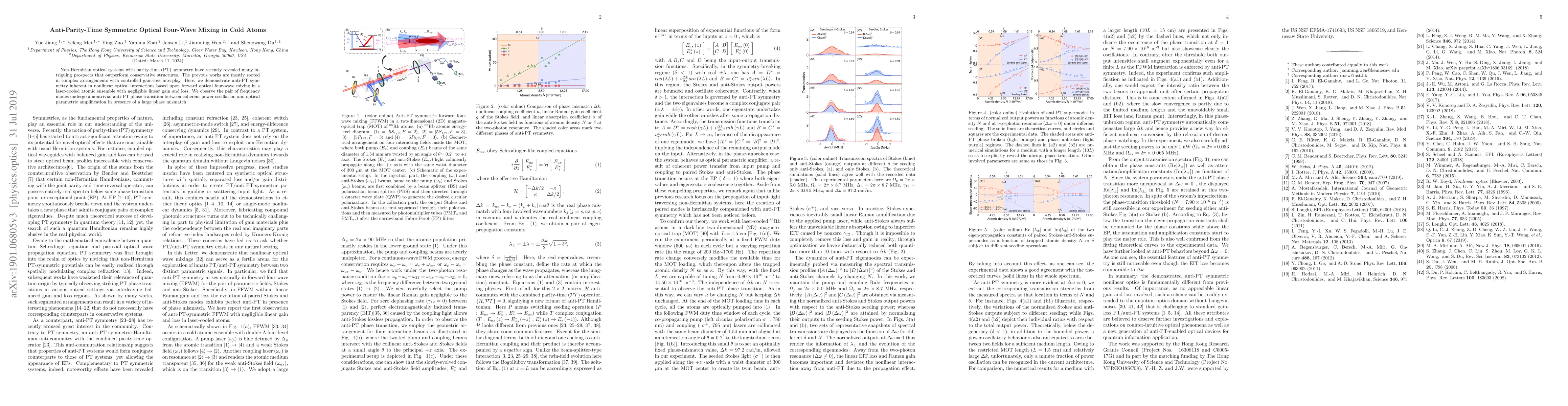 This paper demonstrates anti-parity-time (anti-PT) symmetry in nonlinear optical interactions via four-wave mixing in a laser-cooled atomic ensemble, showing a transition between coherent power oscillation and optical parametric amplification under large phase mismatch. The study highlights the potential of non-Hermitian systems beyond conventional PT-symmetric configurations.