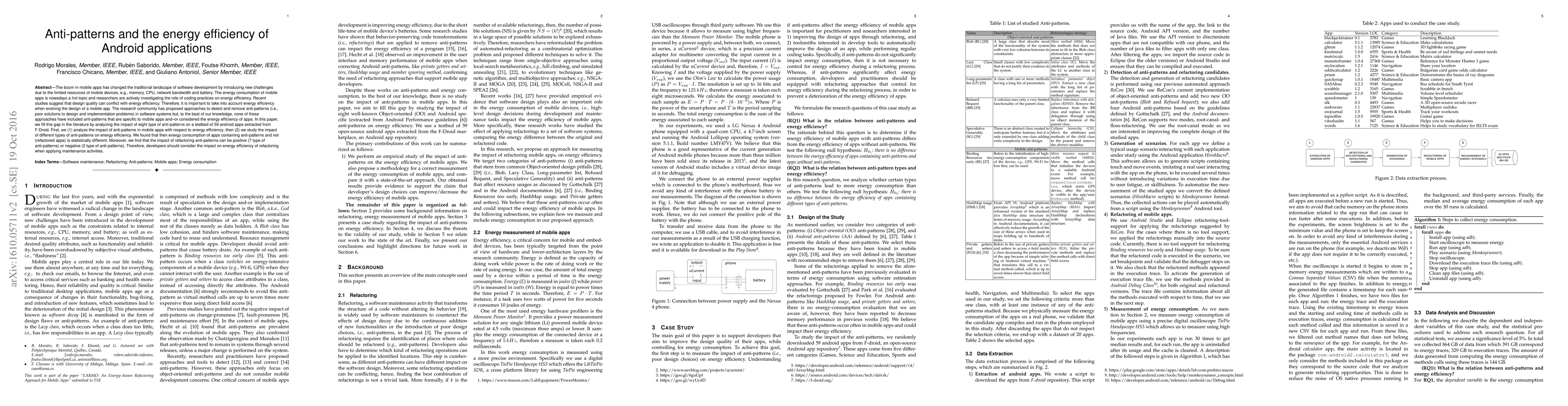 Researchers analyzed 59 Android apps to identify the impact of anti-patterns on energy efficiency, finding that refactoring can improve or worsen energy consumption depending on the type of anti-pattern.